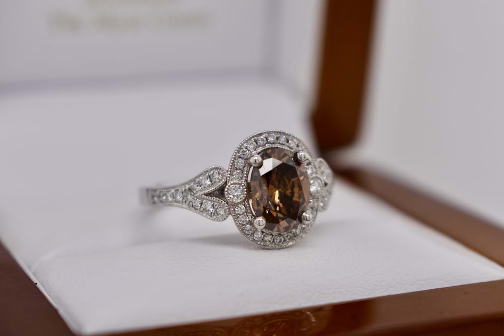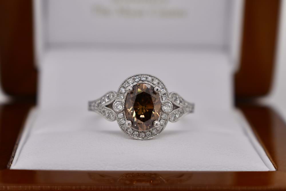 Archived Platinum 1.57ct Champagne Oval Diamond Ring
