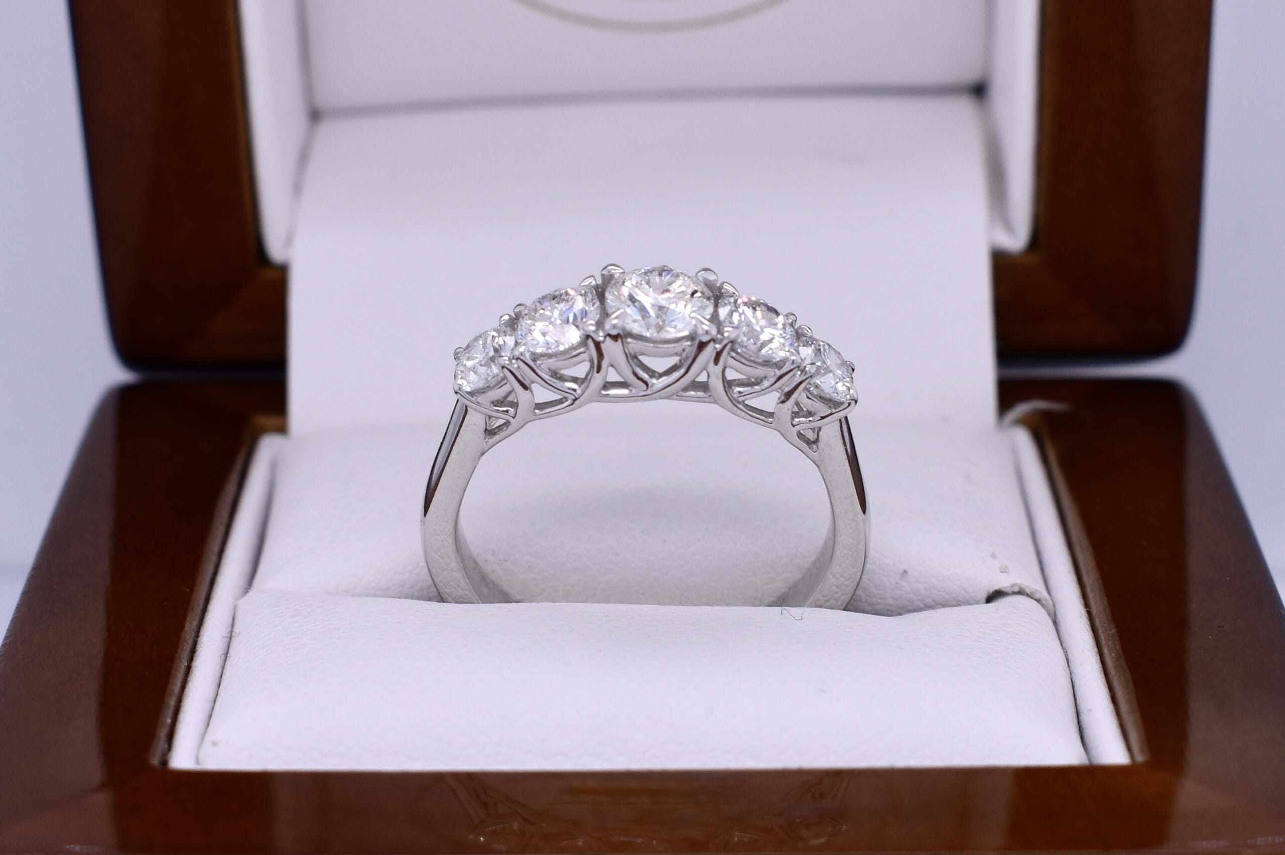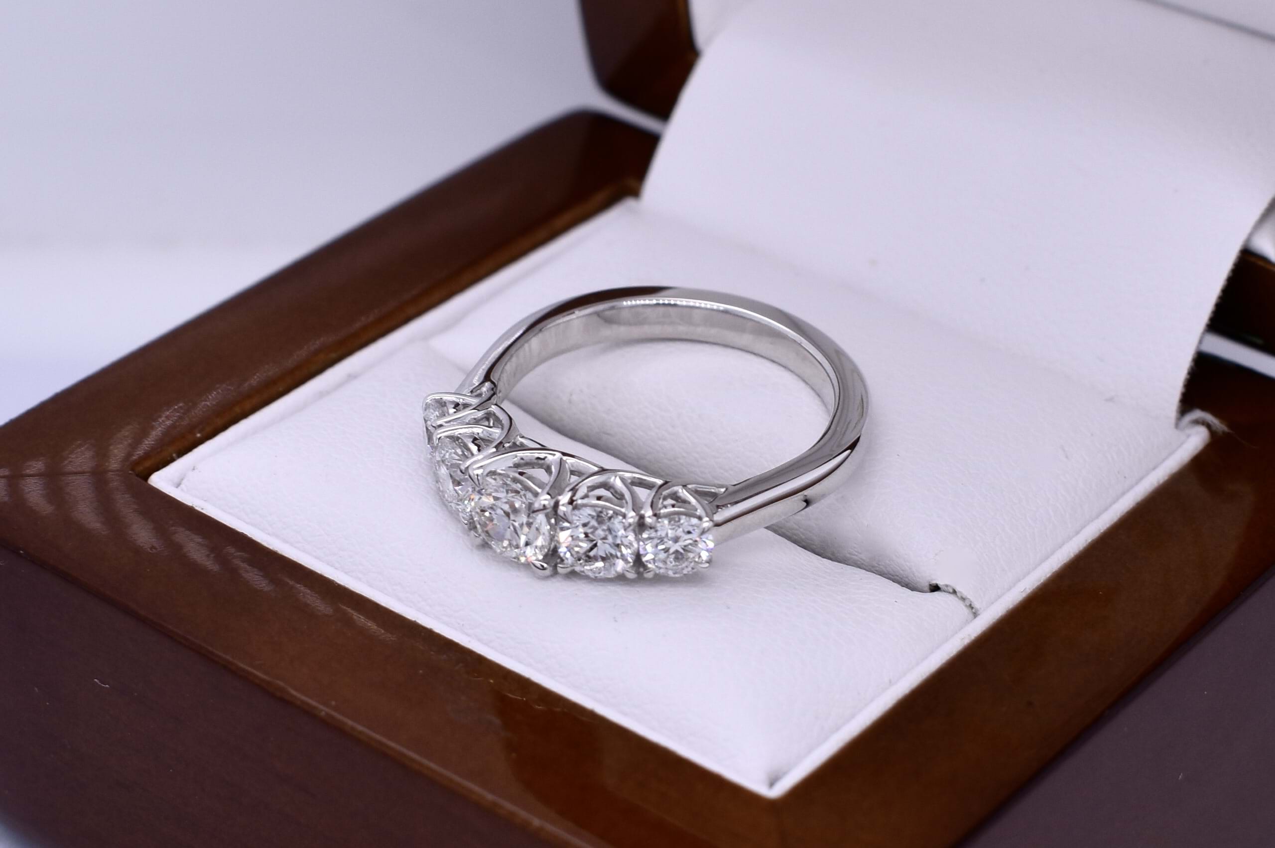 This timeless and feminine design was designed in store alongside our client and features exceptional quality D colour natural diamonds. The ring has been crafted in platinum with a trellis style gallery, it features a 0.50ct centre, with 2=0.61ct and 2=0.40cts graduating down the top of the ring. This ring can be custom made in varying size and quality diamonds and in platinum or gold. Independent Valuation Supplied.