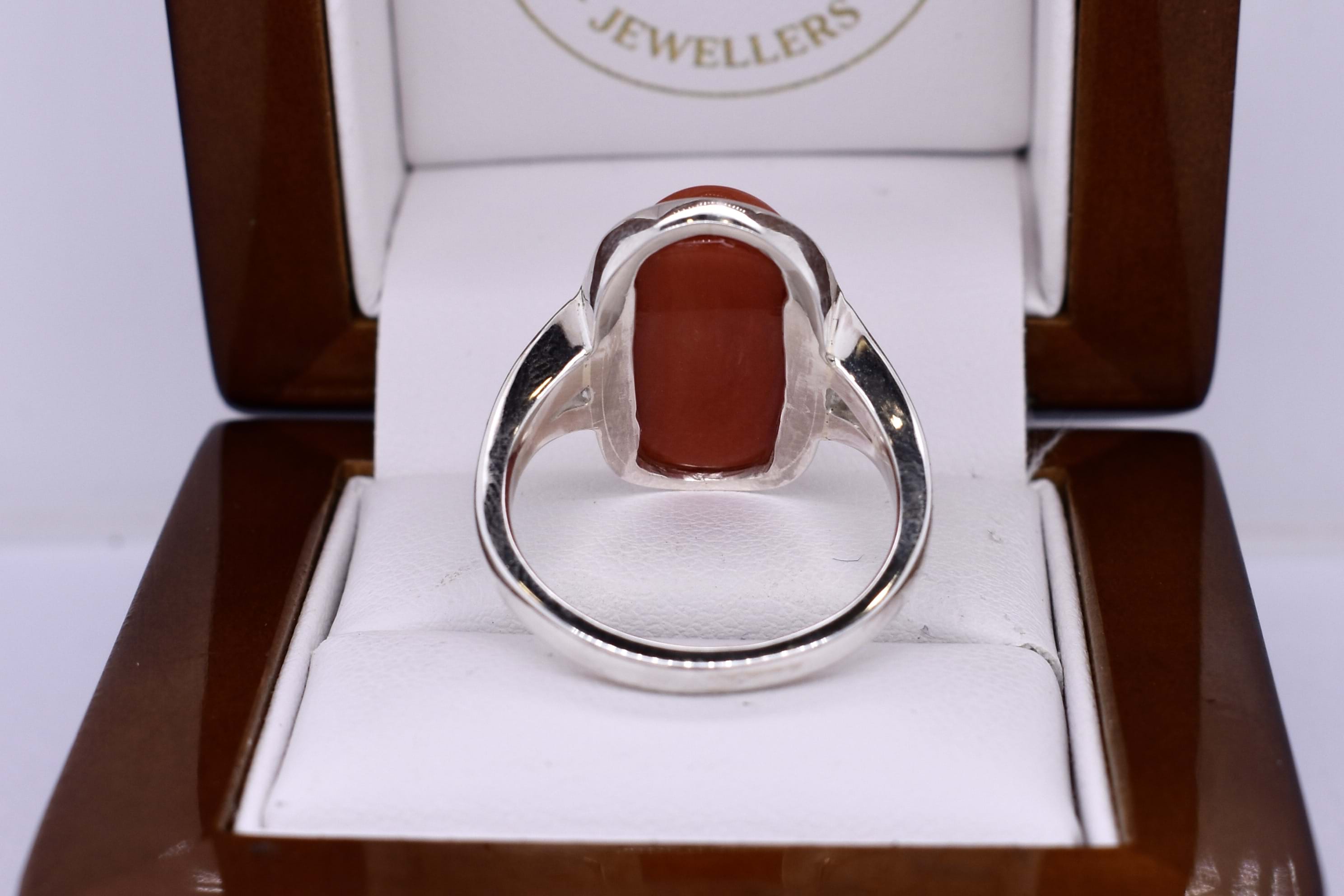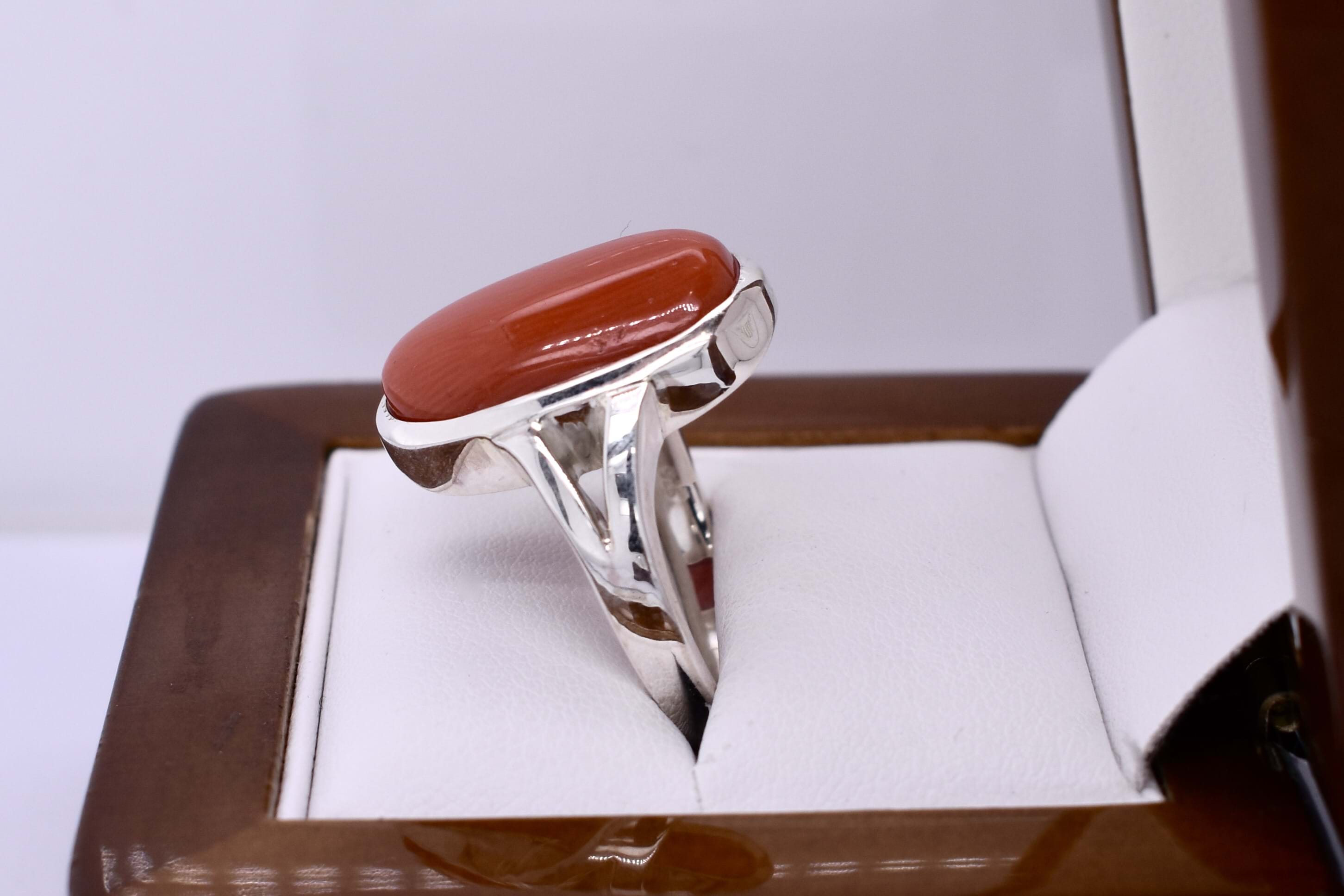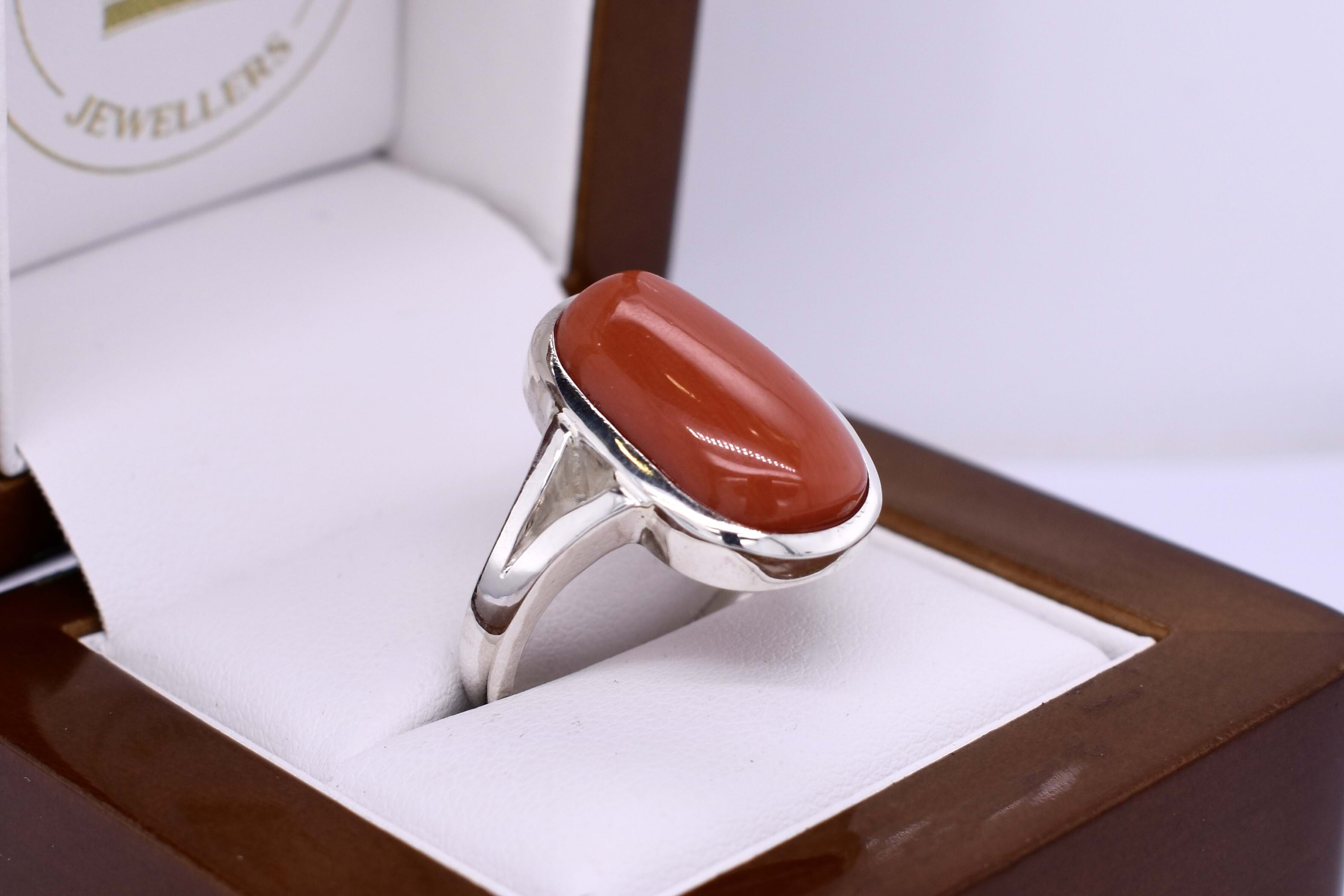 Created for astrological purposes this 12.81ct piece of Italian coral was especially sourced for our client and has been set into a custom made sterling silver ring, designed to ensure the stone is in contact with the finger.