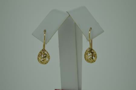 Simple 9ct yellow gold drop earrings featuring teardrop shape filigree work.