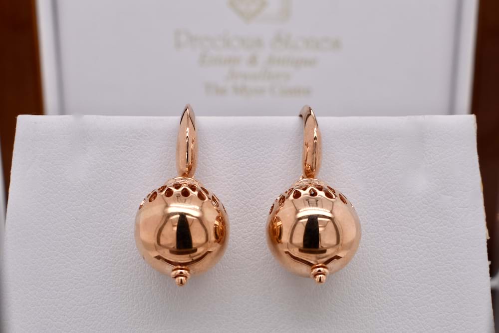 A beautiful pair of 9ct rose gold lantern style earrings measuring 12mm and suspended from shepherd hook fittings