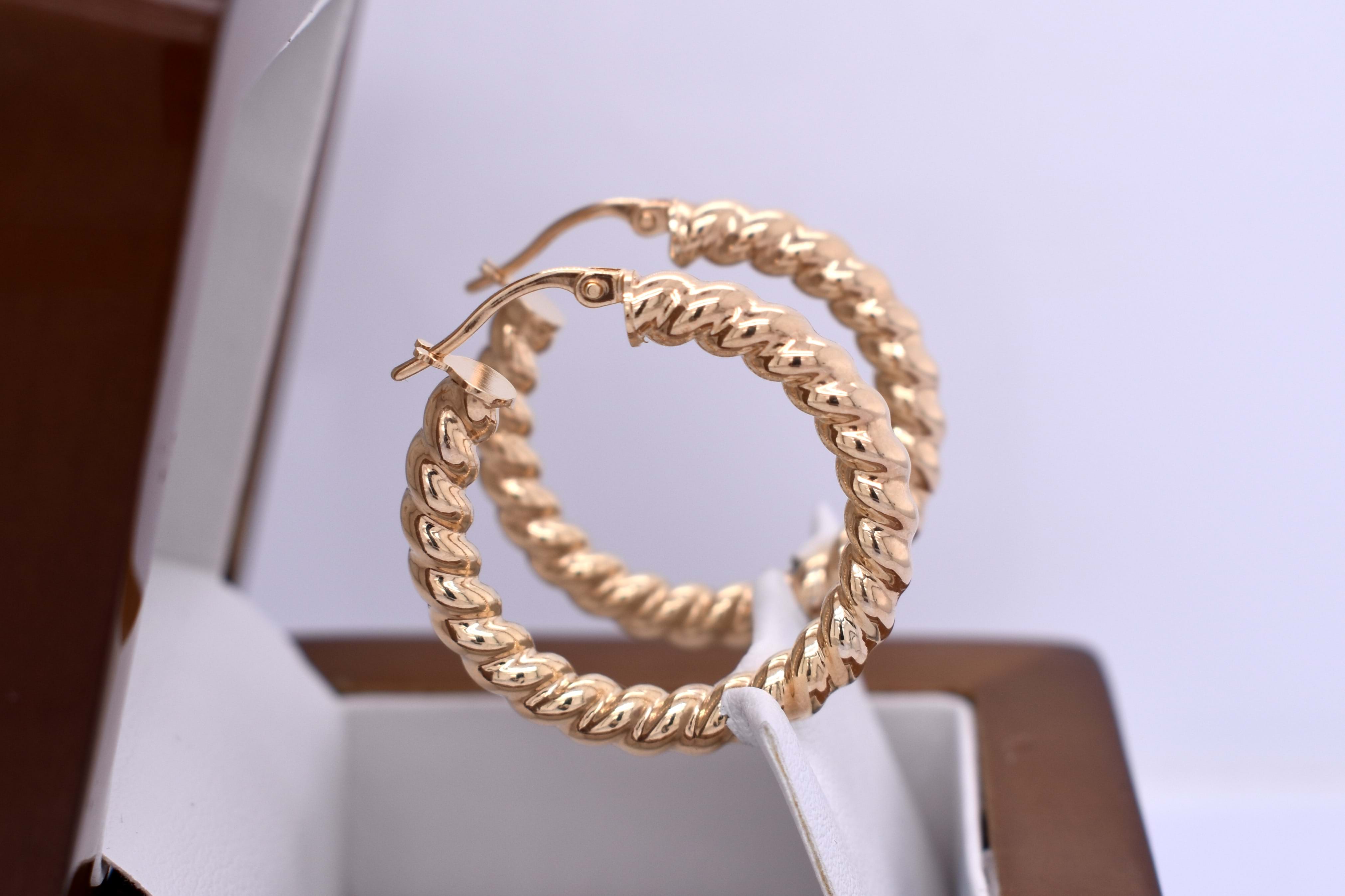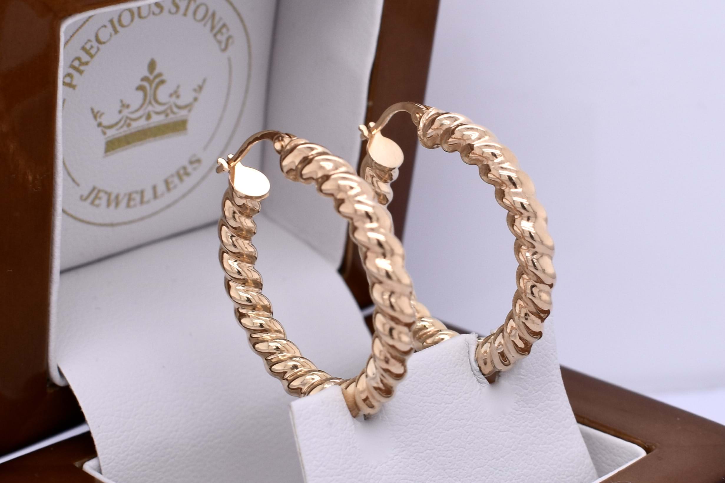 SOLD 9ct Yellow Gold 29x27mm Hollow Twist Hoops