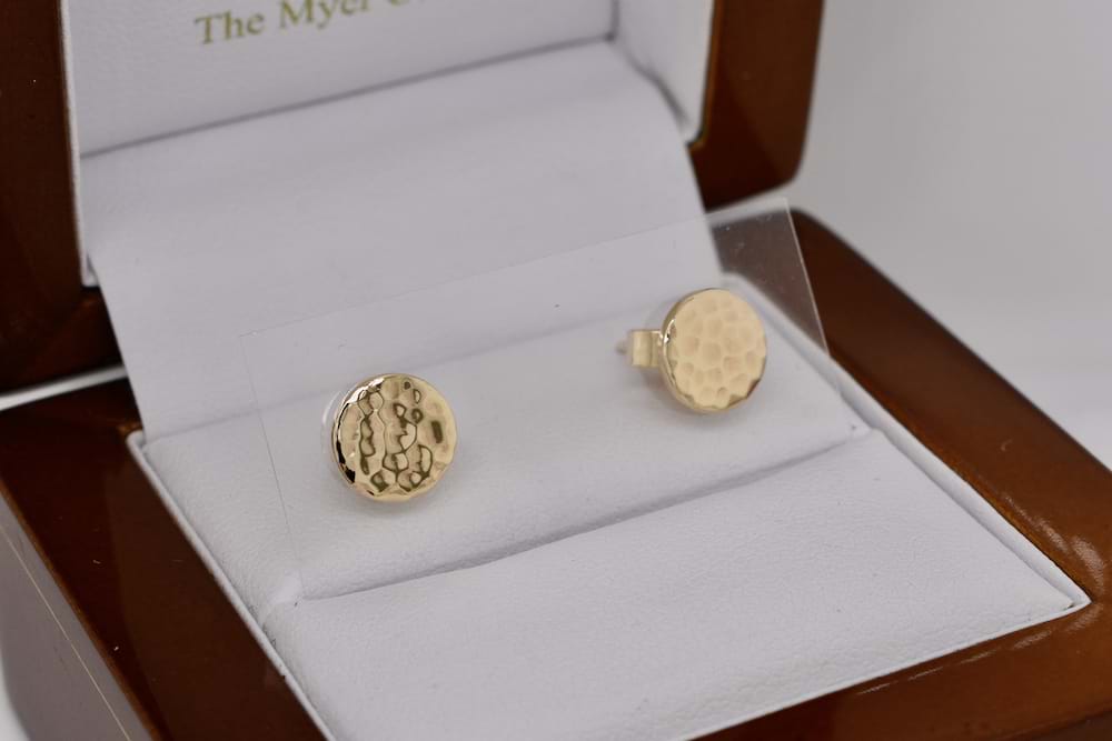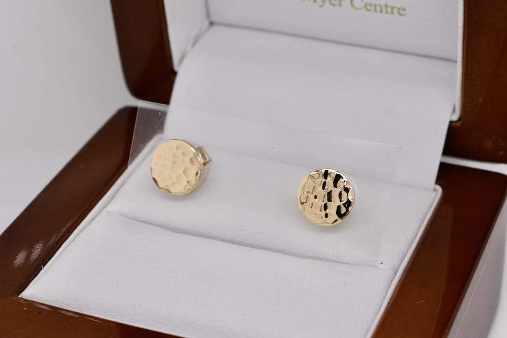 SOLD 9ct Yellow Gold Hammered Disc Studs
