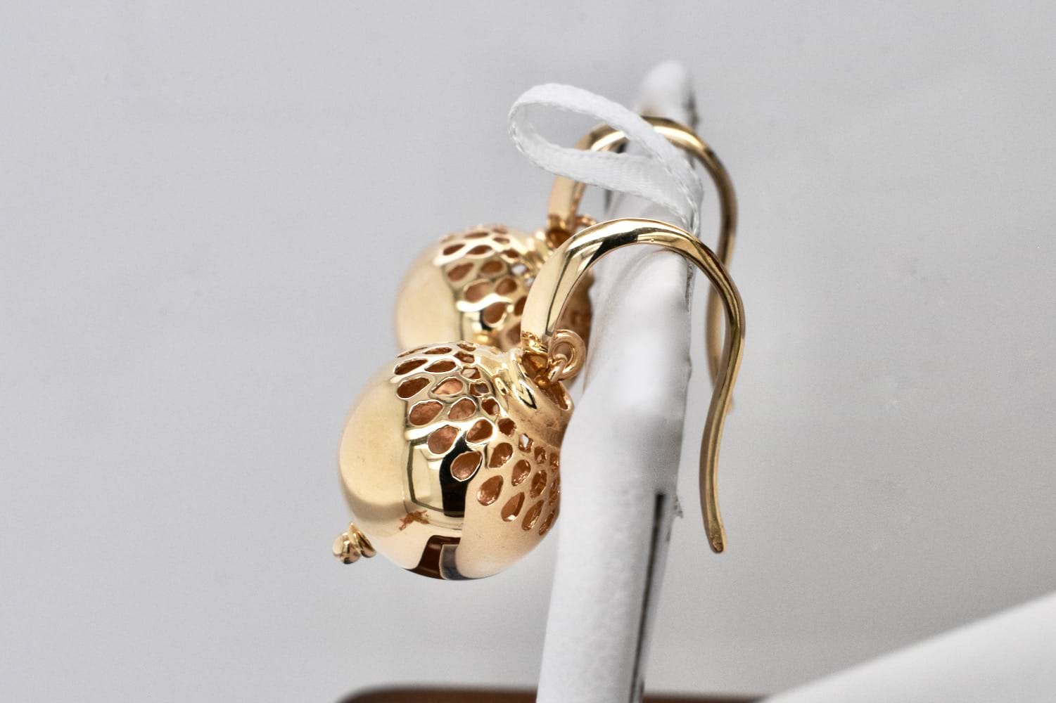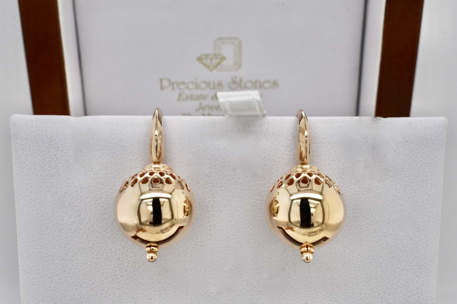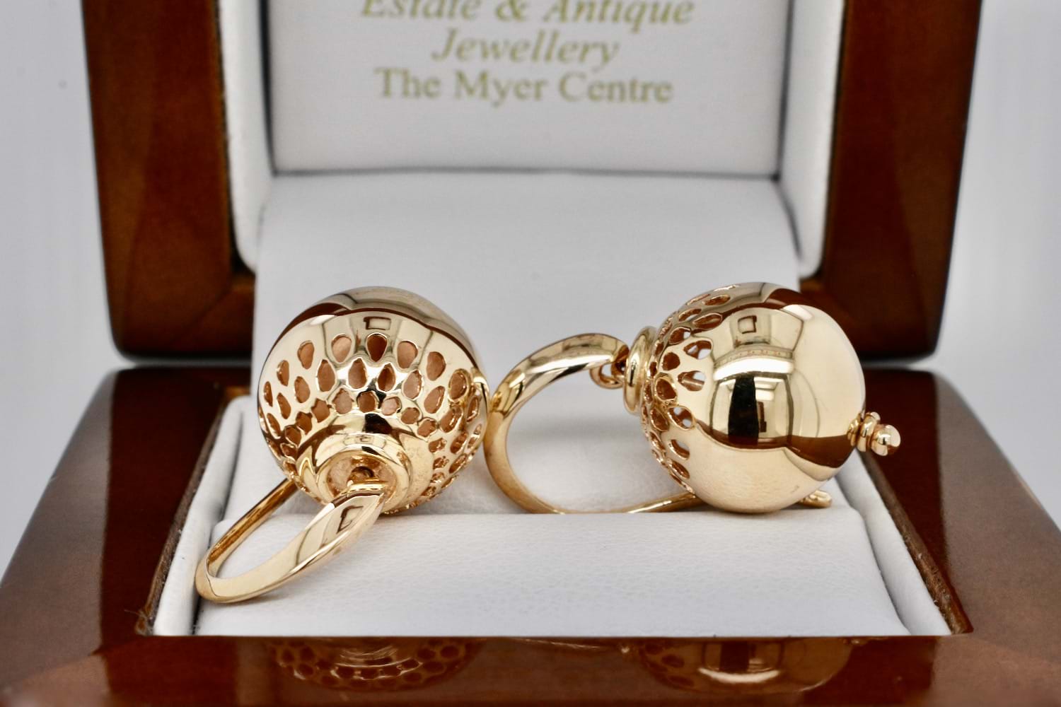 A beautiful and versatile pair of 9ct yellow gold lantern style earrings measuring 14mm round and suspended from shepherd hook fittings