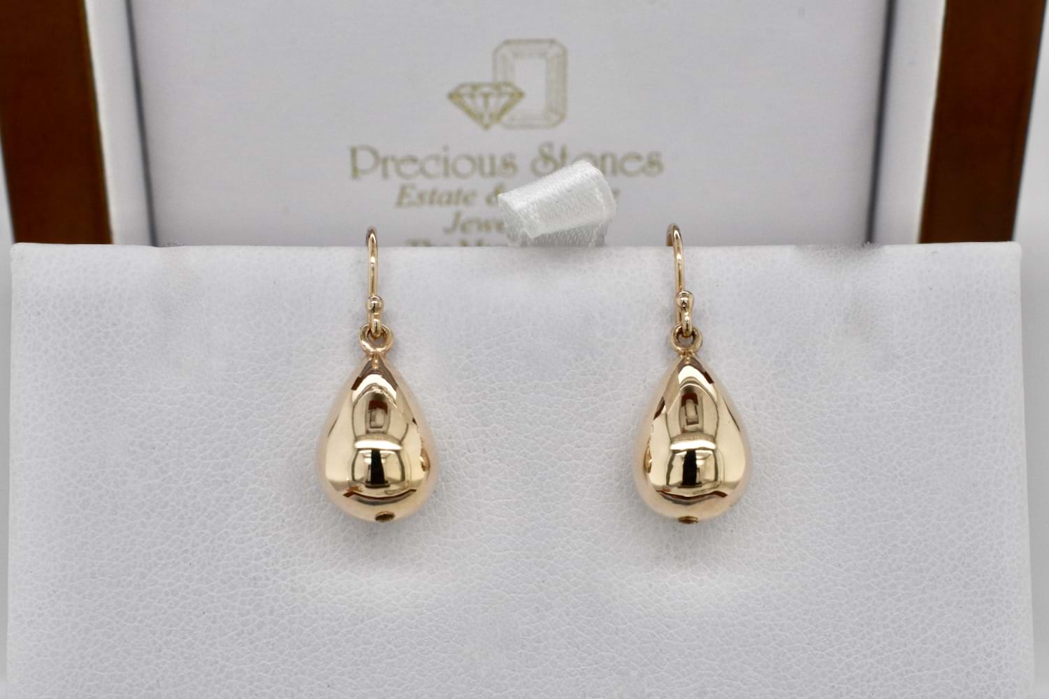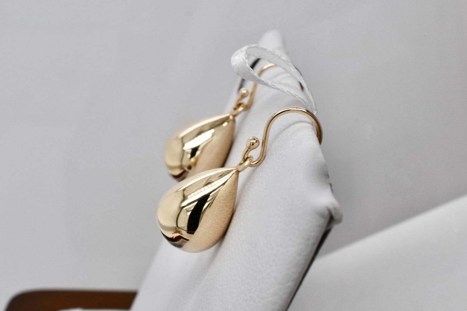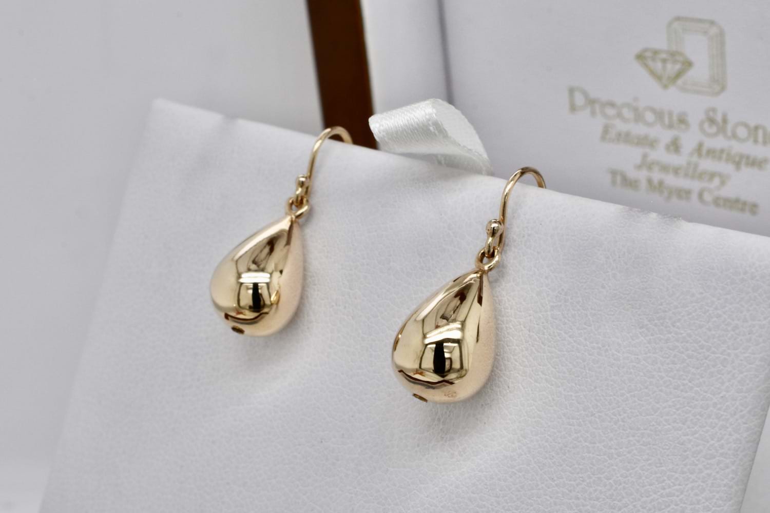 Simple and timeless 9ct yellow gold medium teardrop earrings suspended from shepherd hook fittings. Teardrops measure approx. 12 x 10mm