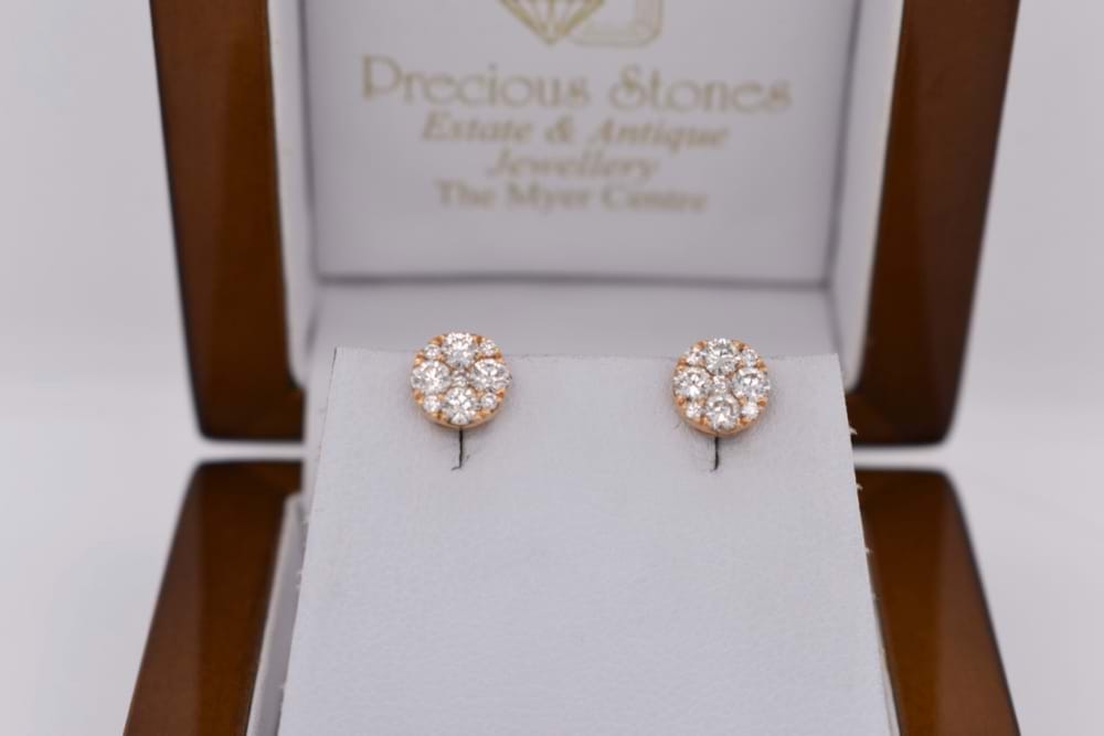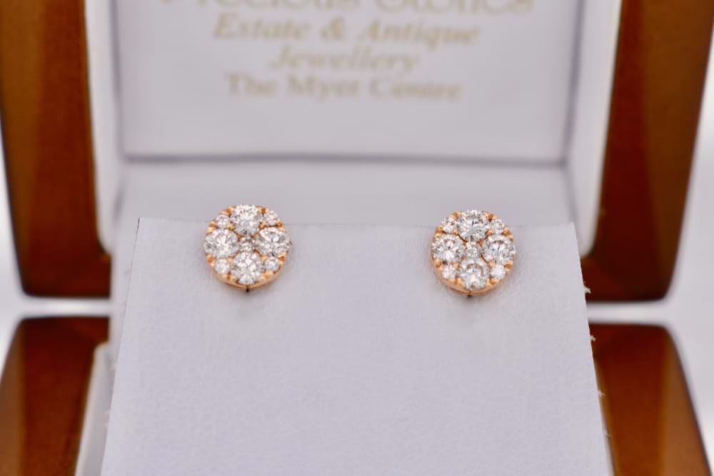 18ct Rose Gold 0.79cts Diamond Cluster Studs