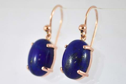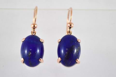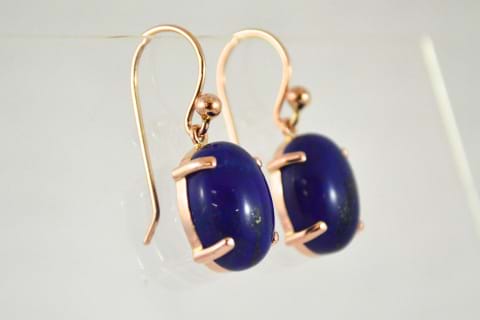 Gorgeous 9ct rose gold claw set drops suspended from shepherd hook fittings with fabulous curvesome cabochon lapis lazuli. Lapis measures 14x10mm