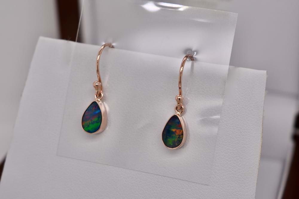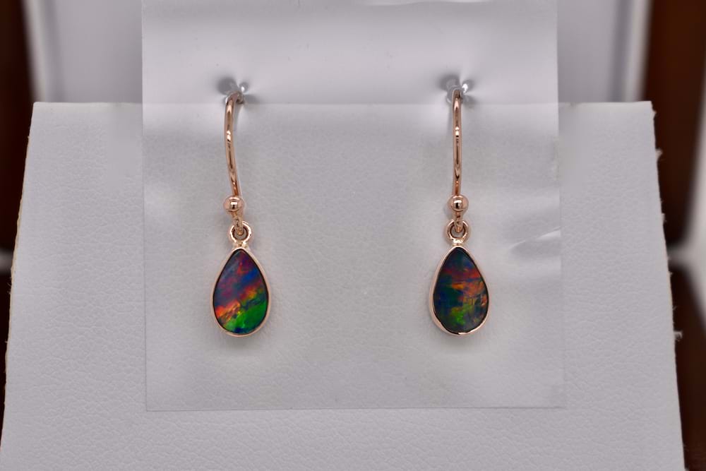 SOLD 9ct Rose Gold Teardrop Doublet Opal Earring