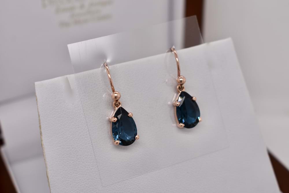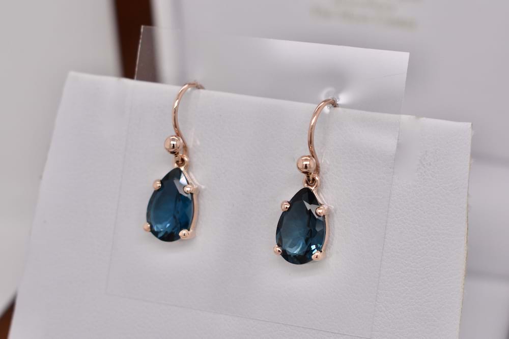 SOLD 9ct Rose Gold Teardrop London Blue Topaz Earrings