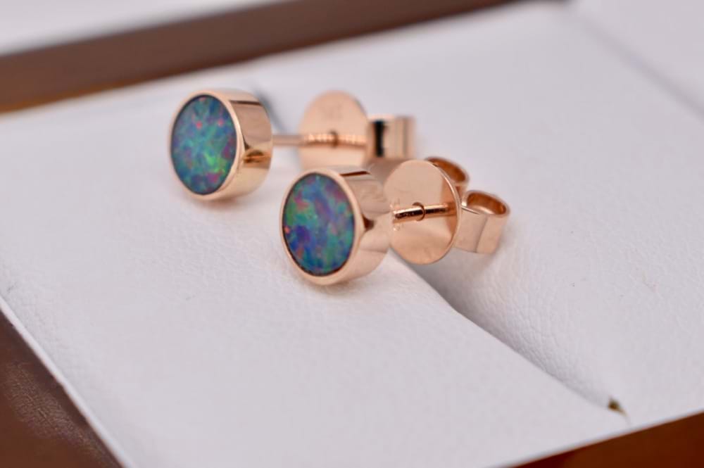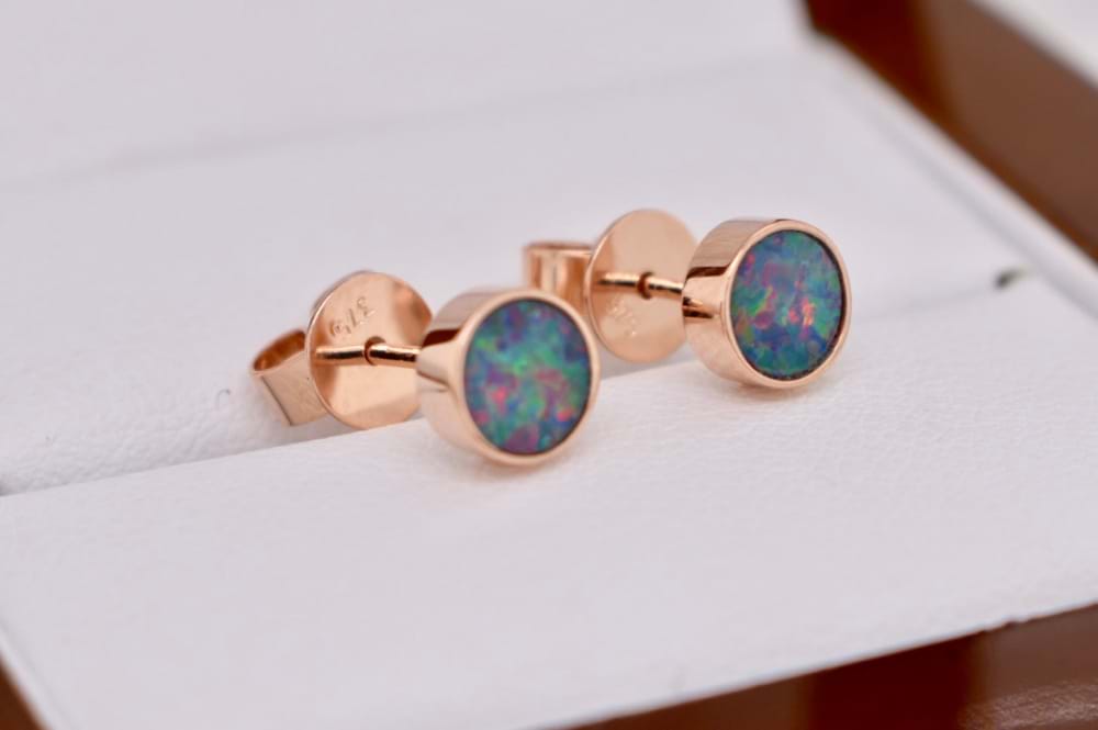 SOLD Handmade 9ct Rose Gold Opal Doublet 6mm Studs