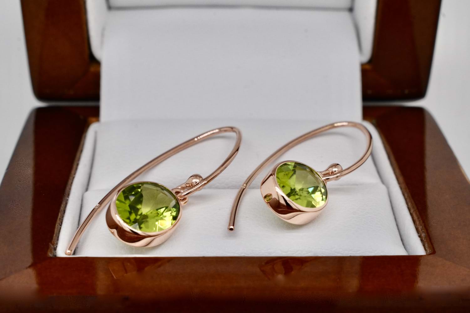 SOLD Handmade 9ct Rose Gold Oval Peridot Long Drop Earrings