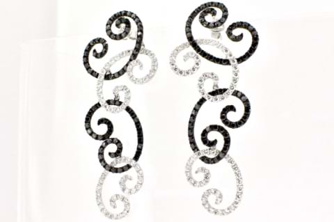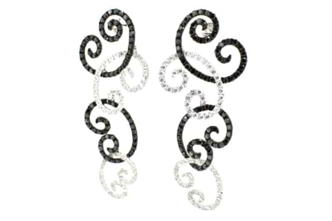 These outstanding, diamond encrusted, earrings have been expertly crafted in 18ct white gold. Featuring the stark contrast of high white diamonds against the intense black diamonds these earrings are the epitome of elegance and timeless style. The pair contain a combined total of 136 white diamonds equaling 4.18cts and 162 black diamonds equaling 5.72ct, making these earrings an arresting addition to your next formal outfit. Independent Valuation Supplied