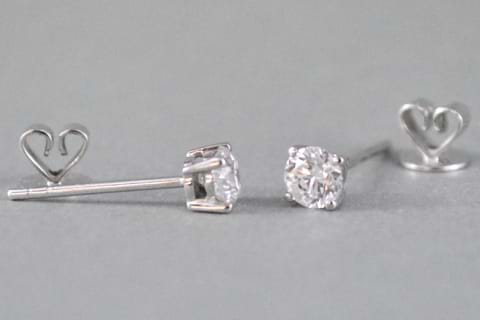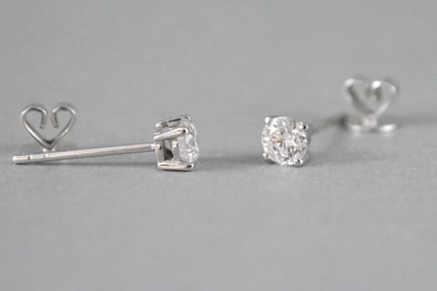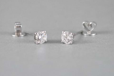 Simple, classic and elegant. Made in 18ct white gold these four claw stud earrings feature a combined total of two scintilating round brilliant cut diamonds totalling 0.61cts. Independent Valuation Supplied