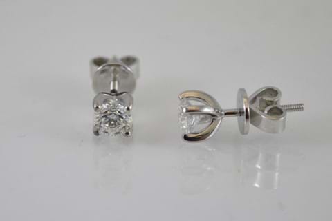 Set into 18ct white gold these four claw studs have a thread post and butterfly fitting for safety and contain exceptionally high white round brilliant cut diamonds. Totalling 0.80cts these diamonds are an excellent size to be worn daily and can be dressed up by adding a diamond surround. Independent Valuation Supplied