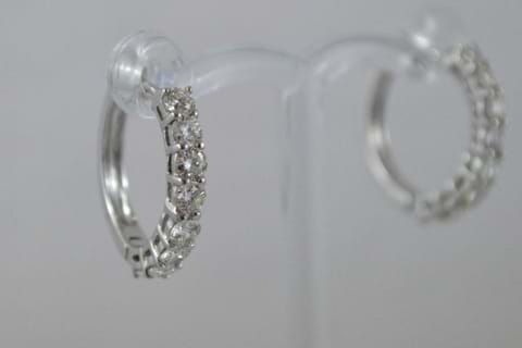 Claw set in 18ct white gold these stunning hoop earrings feature eight round brilliant cut diamonds in each hoop with a combined total carat weight of 1.26cts. Independent Valuation Supplied