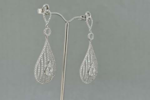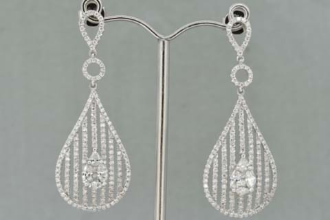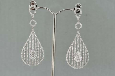Spectacular diamond chandelier earrings designed in a classic teardrop shape to compliment the neck of the wearer. Containing a mixture of round, pear and princess cut diamonds amounting to 352 individual diamonds each grain or invisible set and totaling 2.94cts these make a stunning addition to any formal attire. Independent Valuation Supplied