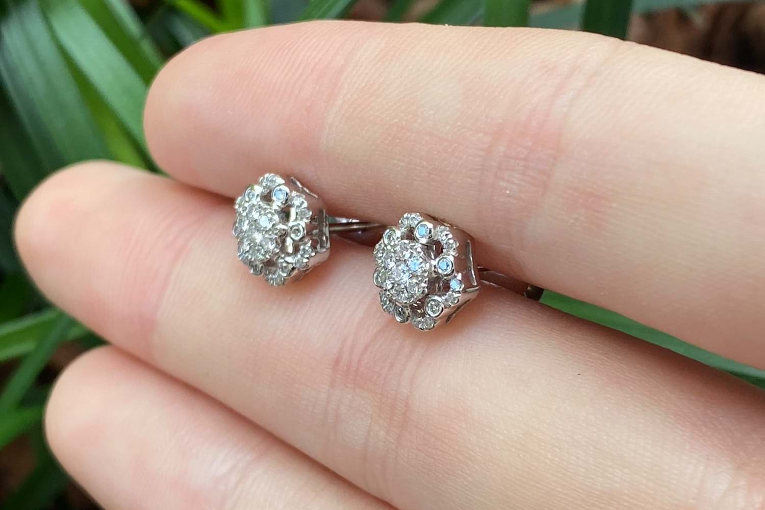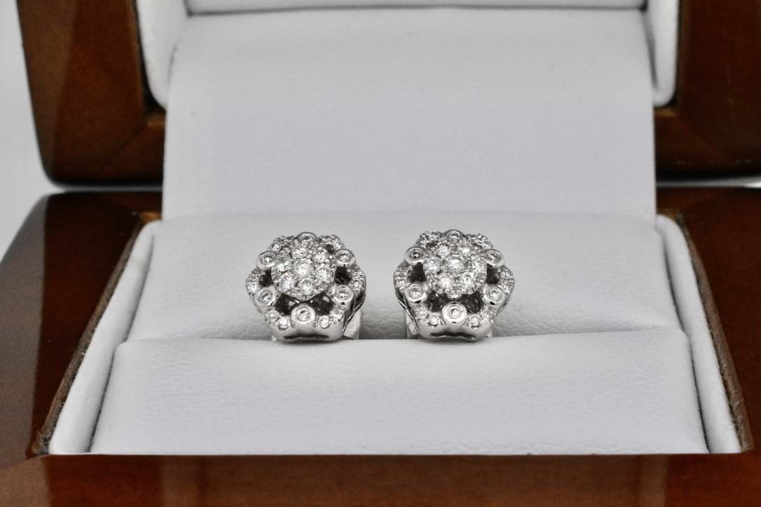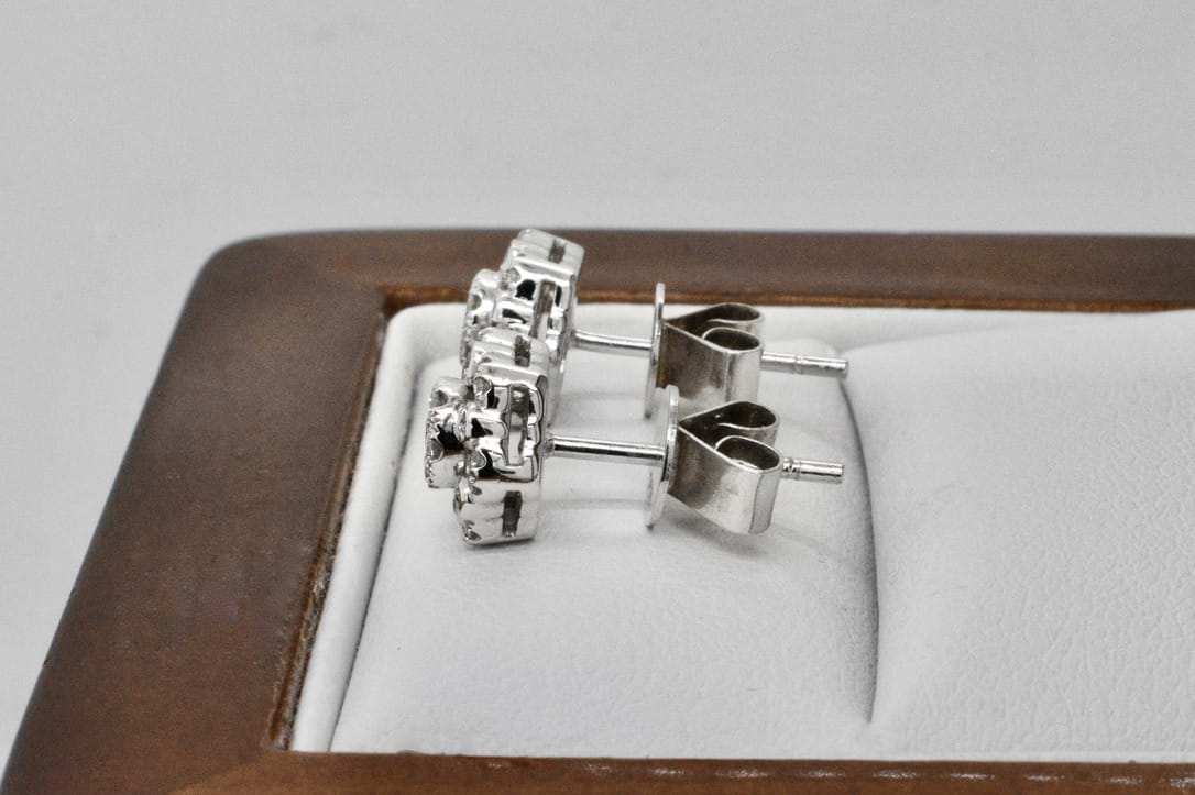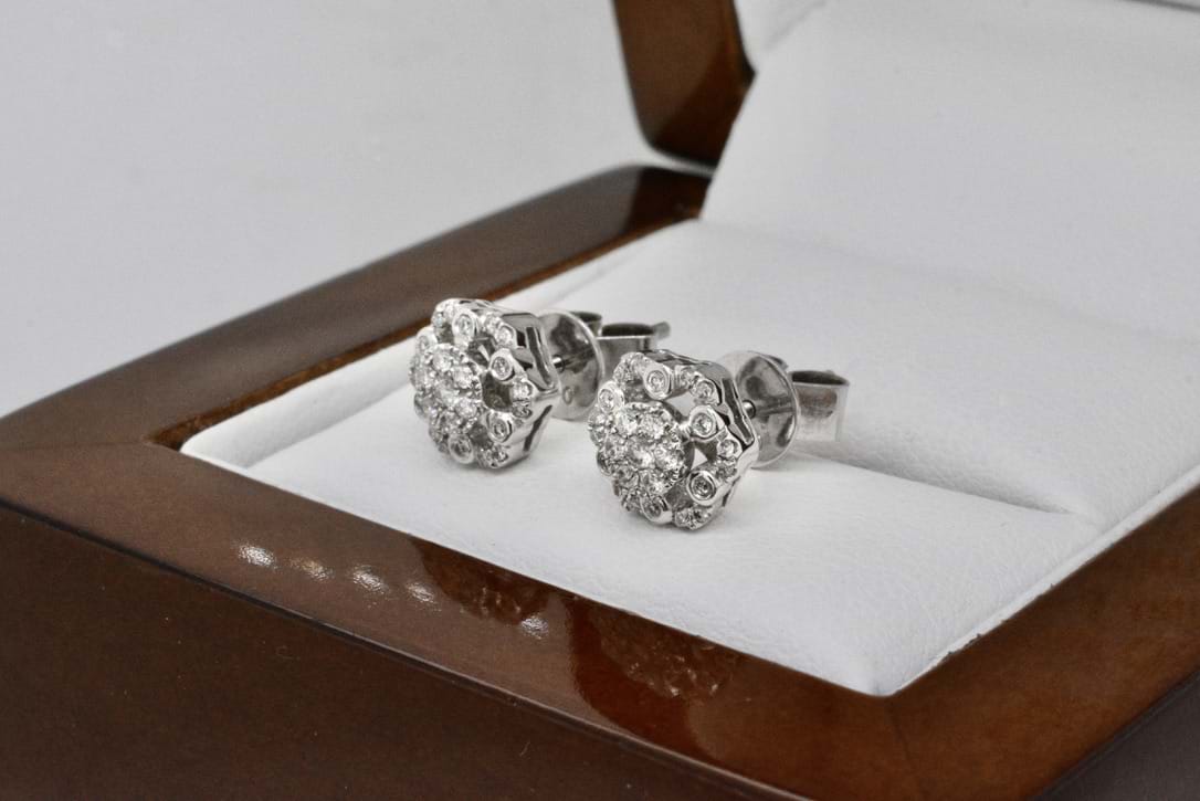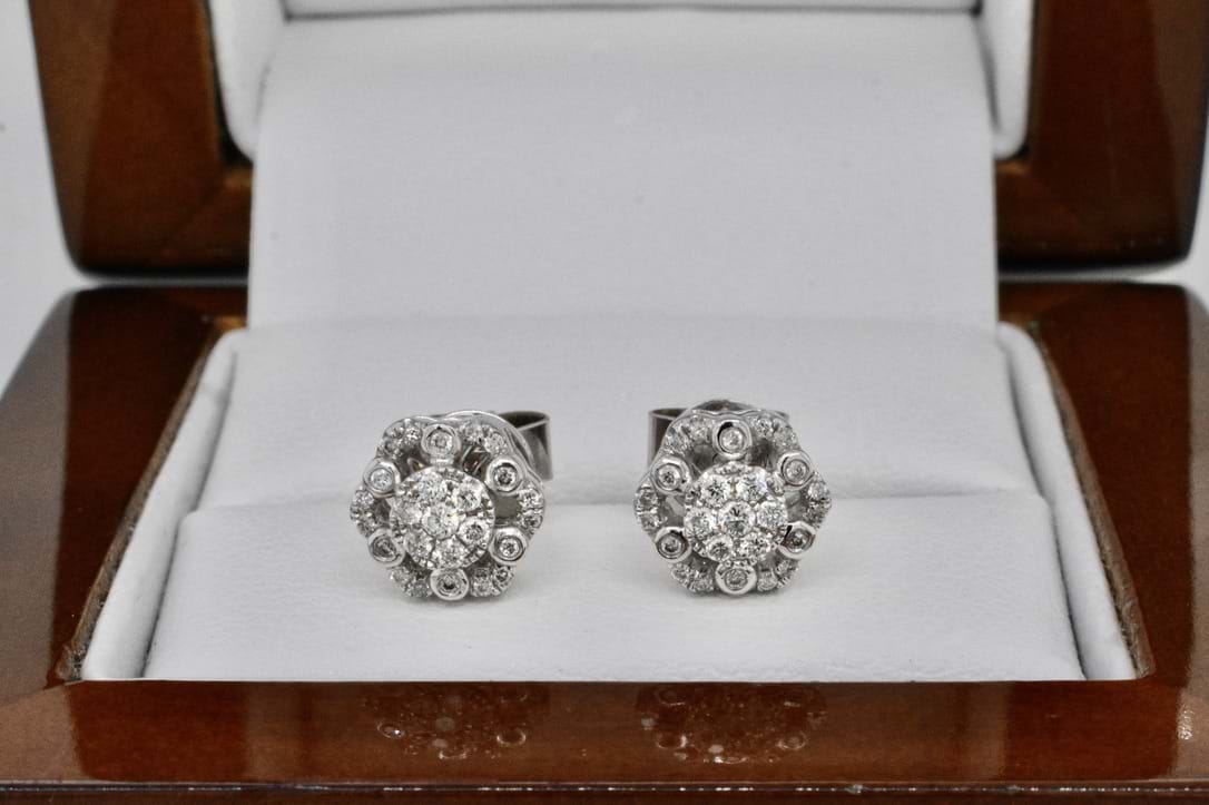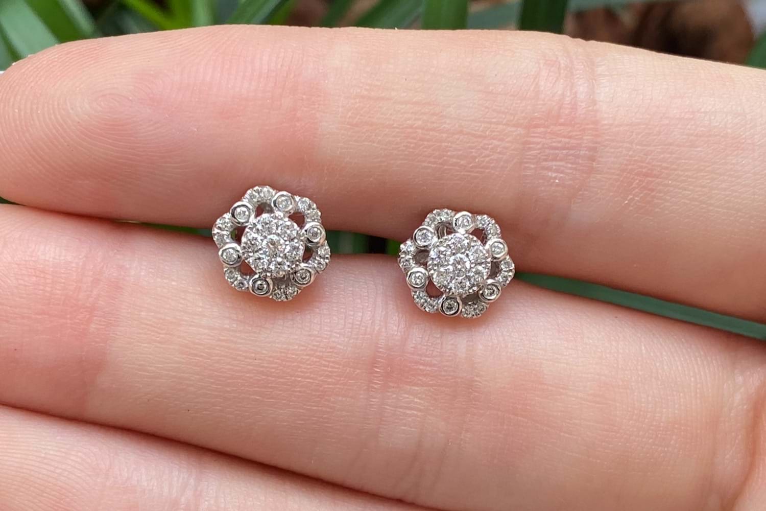 A pretty design in 18ct white gold features an illusion of round brilliant cut diamonds in the centre surrounded by a halo of, partly bezel party claw set, round brilliant cut diamonds. A total of 50 diamonds combined equaling 0.25cts. Independent Valuation Supplied