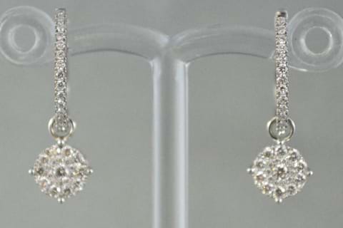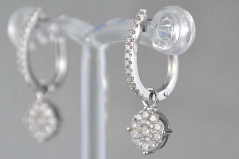 A beautiful pair of diamond set huggies crafted in 18ct white gold, perfect by themselves but absolutely stunning when teamed with these sparkling diamond set illusion drops which can be taken on and off to suit your every whim! A total of 72 round brilliant cut diamonds equaling 0.54cts. Independent Valuation Supplied