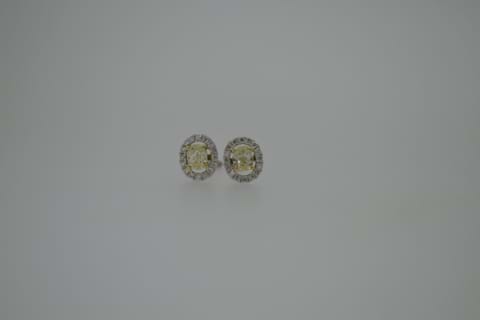 These scintilating light fancy yellow diamonds total 0.54cts and are surrounded by a halo of sparkling white diamonds totalling 0.20cts set into 18ct white gold studs. Independent Valuation Supplied.