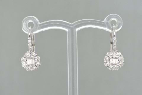 With diamond set euro-clip fittings these 18ct white gold earrings are the perfect understated, sparkling addition to your jewellery collection. With a single row of diamonds leading the eye down to a cluster of round and baugette diamonds they have a combined total of 1.02cts. Independent Valuation Supplied