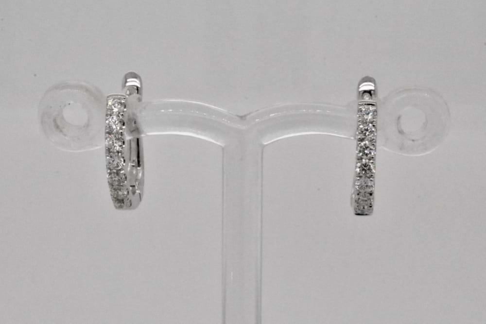 Each earring is crafted in 18ct white gold and is a U shape hoop style earring with seven cut away claw set round brilliant cut diamonds. Combined total diamond content equals 0.31cts (G/SI). A fabulous understated pair of hoops for everyday wear, or as a foundation to suspend earring enhancers from. Independent Valuation Supplied