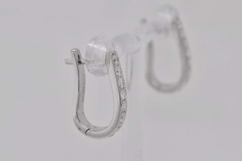 Beautifuly constructed in 18ct white gold and set with eight white, round brilliant cut diamond in each earring with a combined total weight of 0.50cts. These Diamond huggies can be worn everyday just as they are or you can add different drops of your choice. Pictured with the huggies are ruby and diamond enhancers and also pearl enhancers, all of which are available for separate purchase.