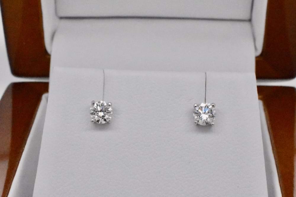 Set into high quality 18ct white gold four claw stud fittings are these scintillating round brilliant cut diamonds. With a single diamond set into each earring and a combined weight of 0.51cts these studs are stunning worn as is or when paired with removable diamond jackets. Independent Valuation Supplied