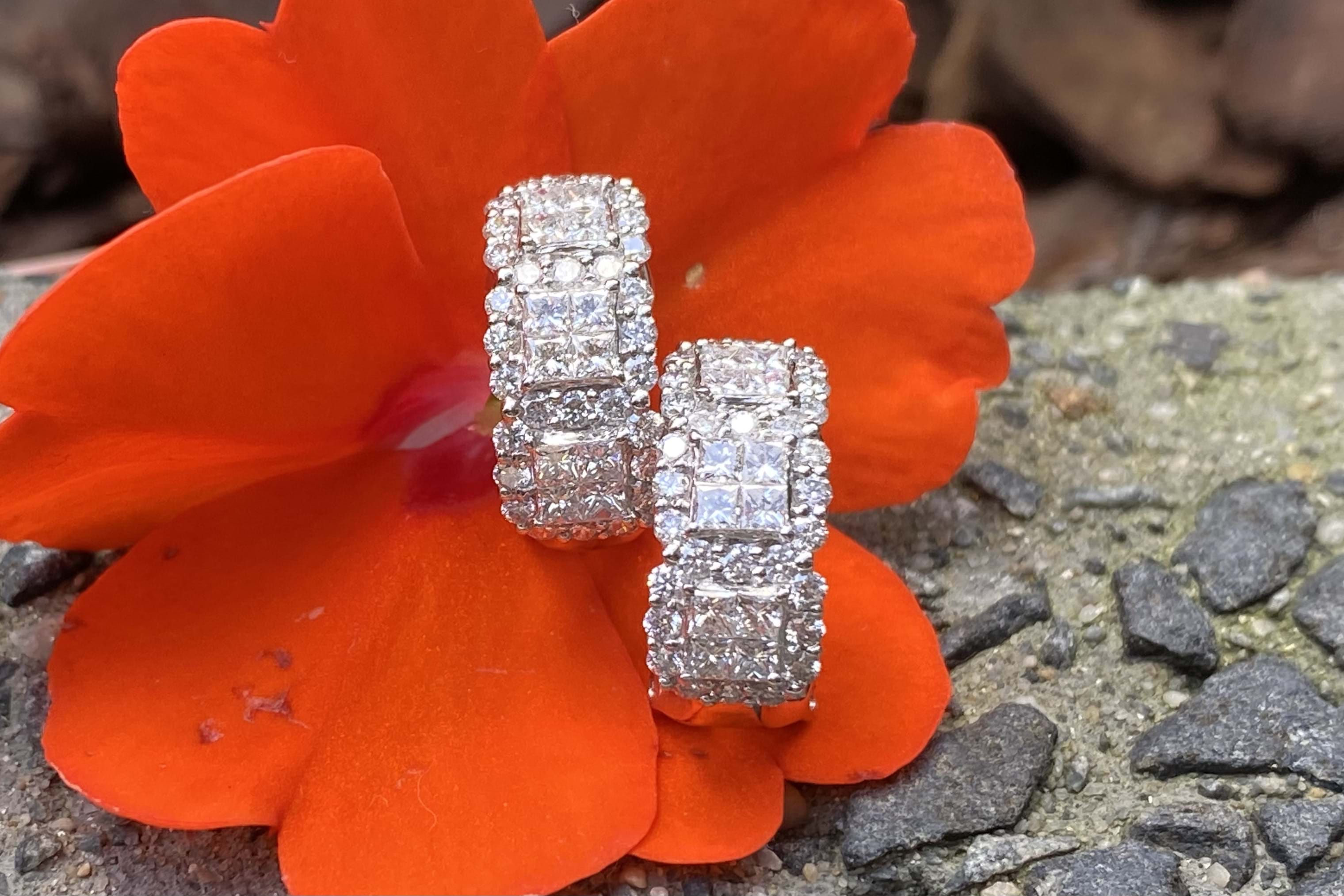 SOLD 18ct White Gold 2.40ct Diamond Half Hoop Earrings