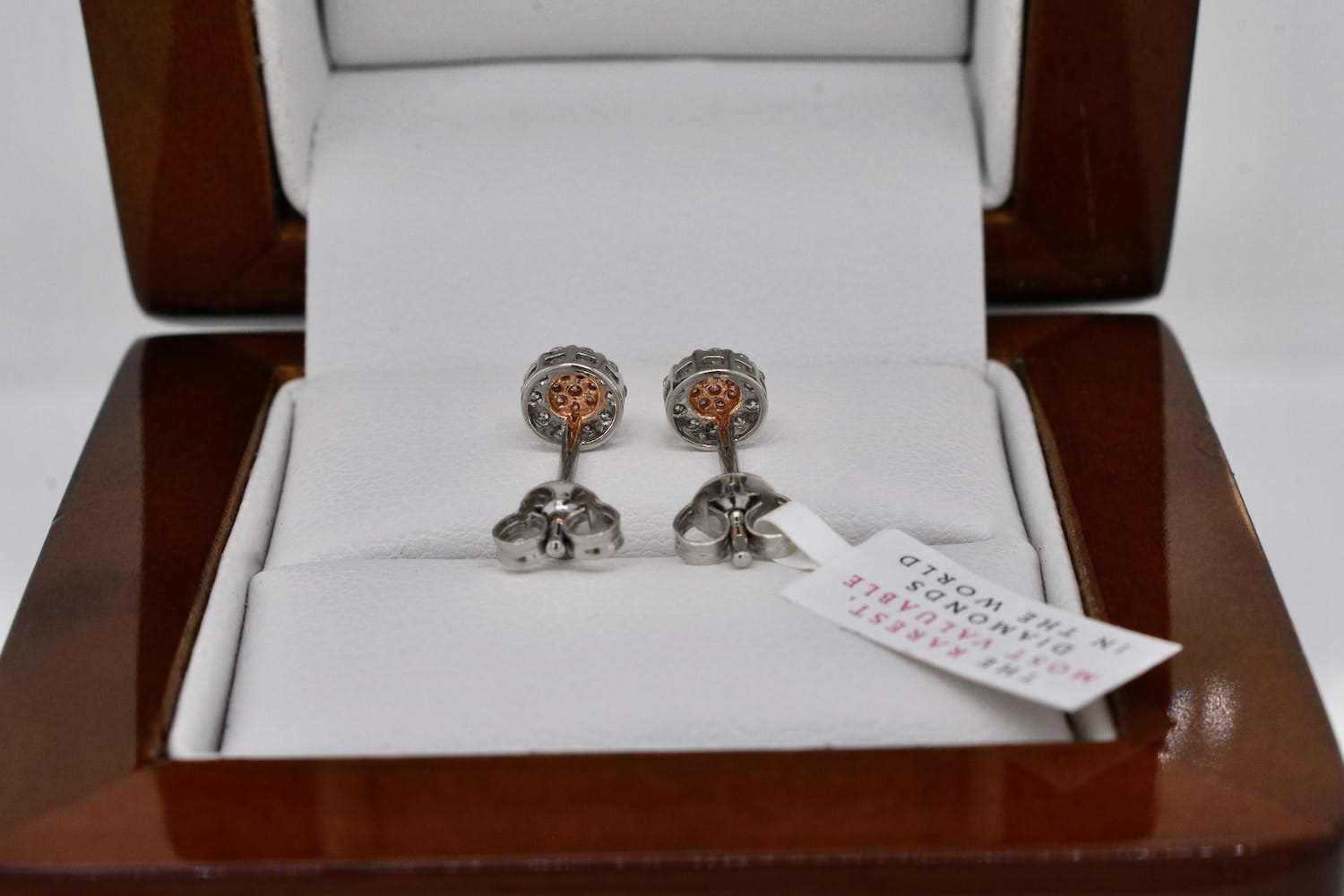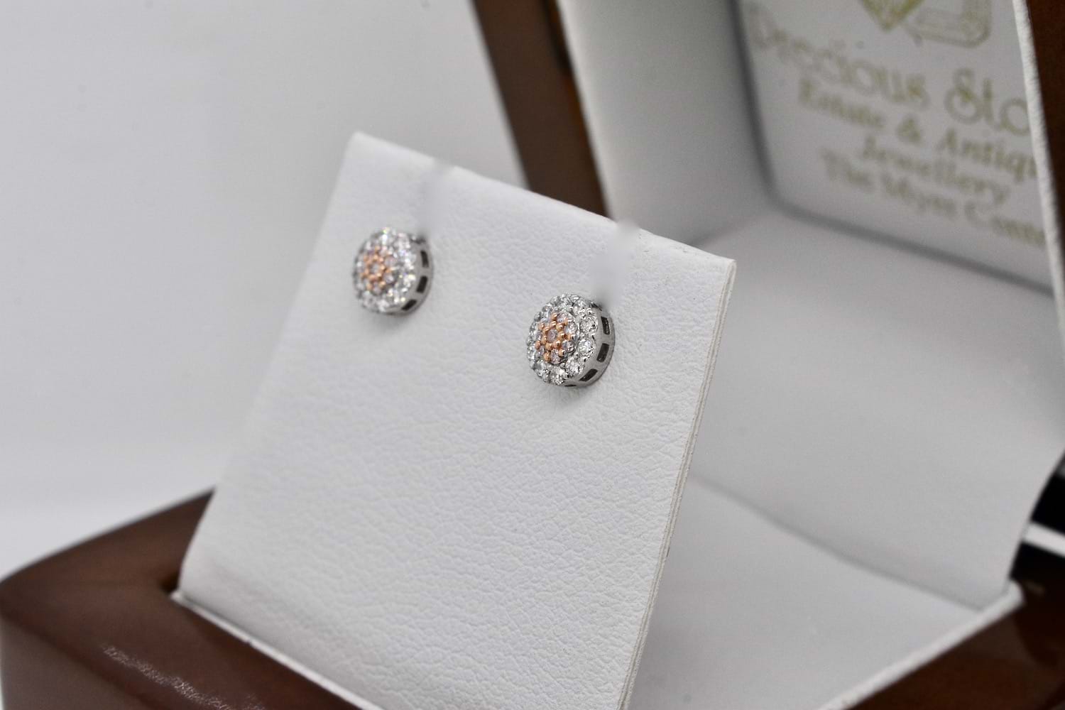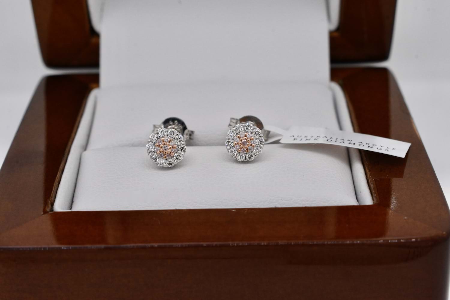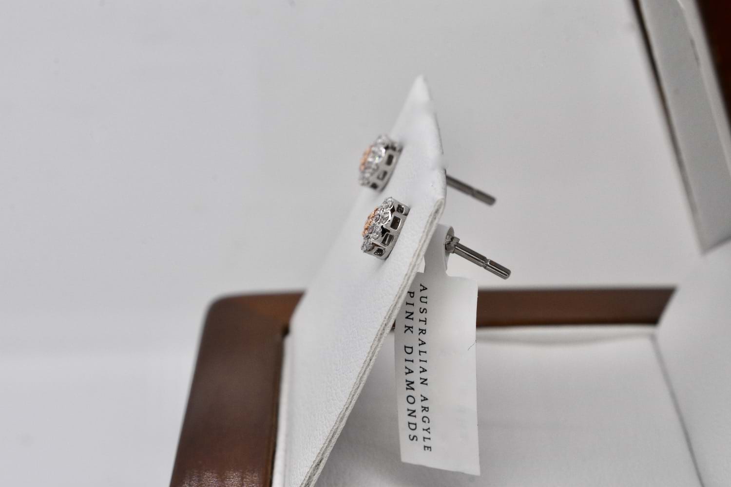 SOLD 18ct White/Rose Gold 0.08ct Argyle Pink & 0.14ct White Diamond Cluster Studs