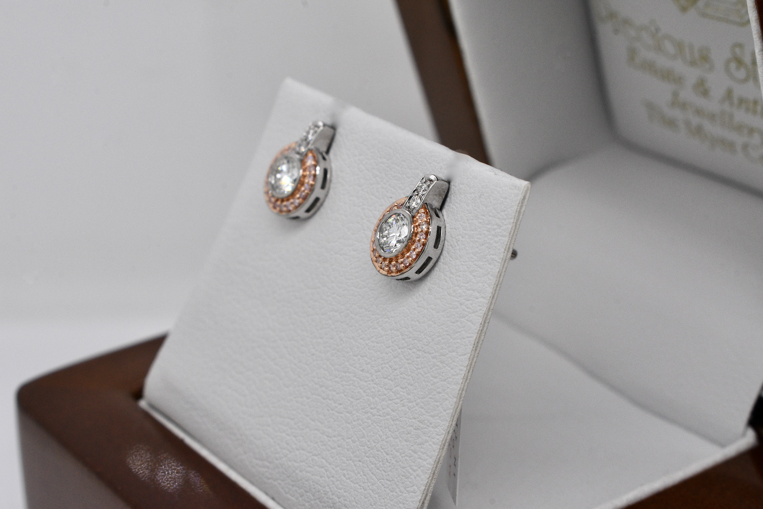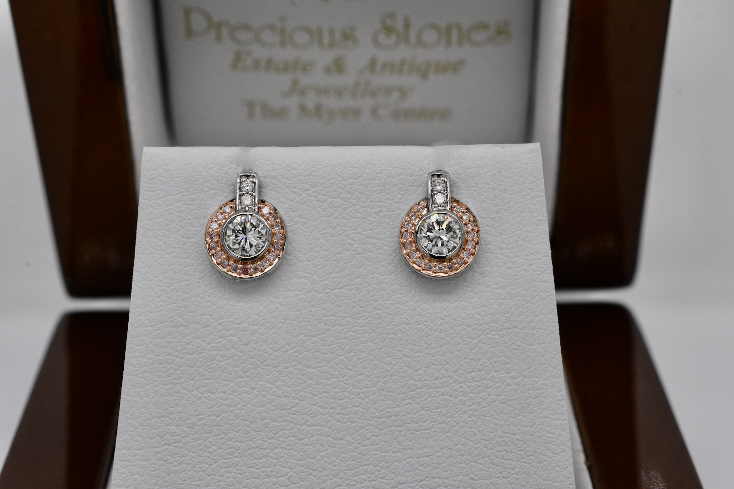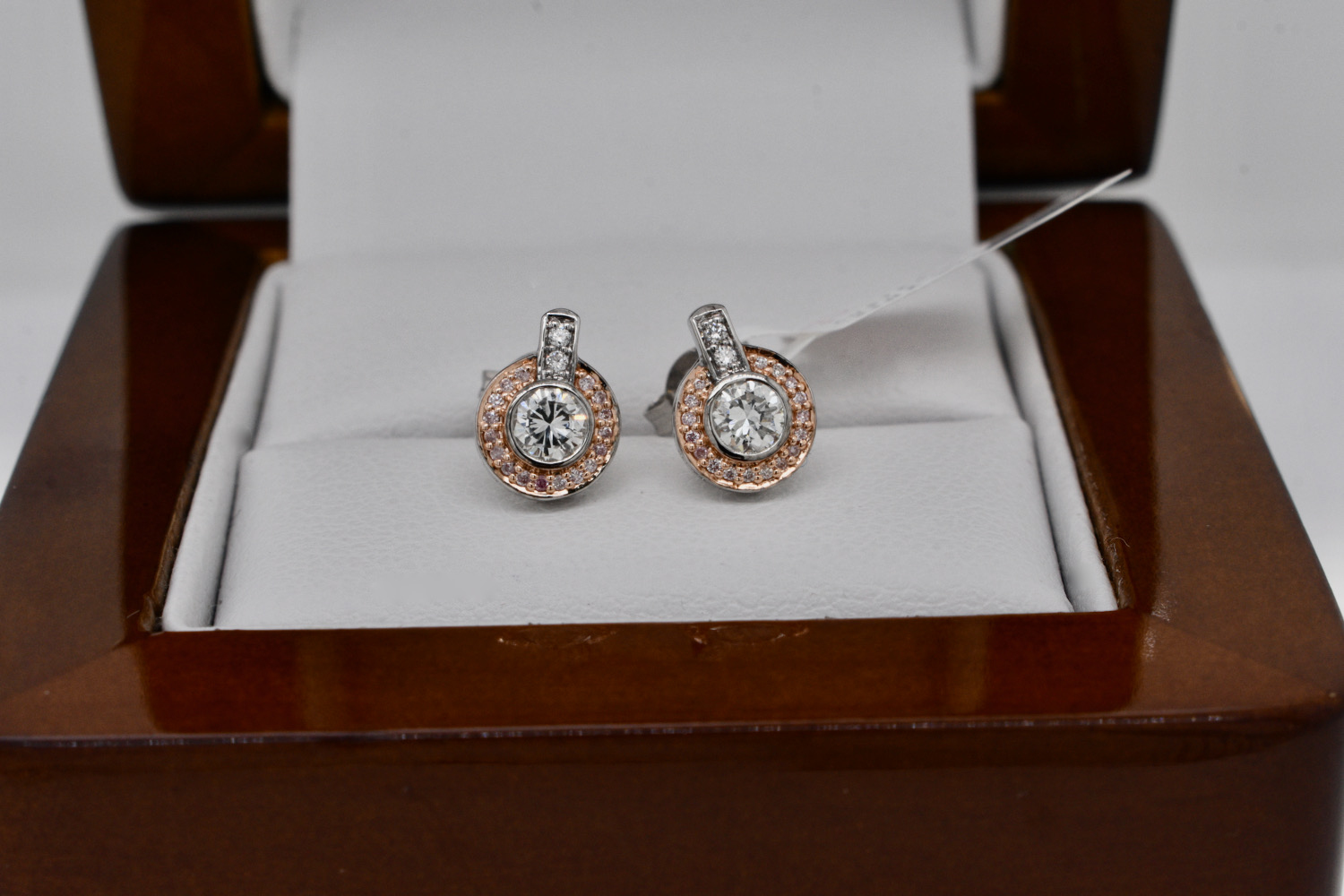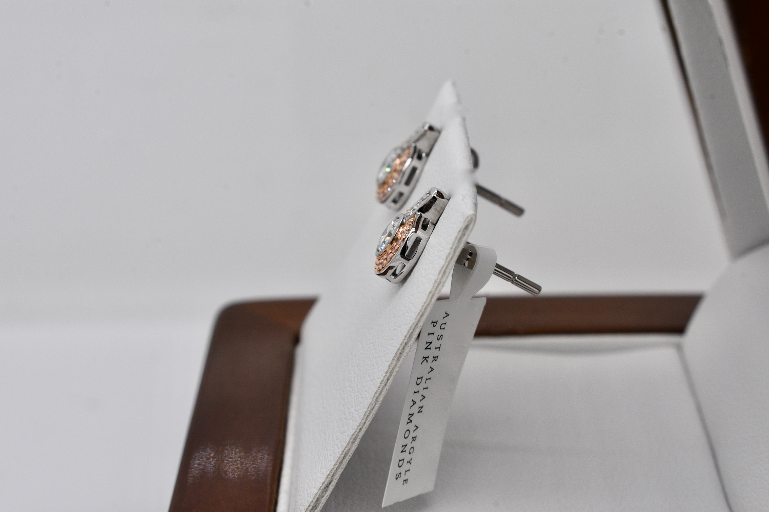 SOLD 18ct White/Rose Gold 0.14ct Argyle Pink & 0.17ct White Diamond Studs