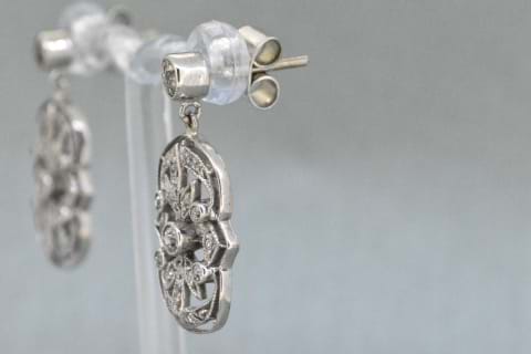 Original 1920's Art Deco diamond floral drops are handcrafted in Platinum. They are beautifully made by hand using shimmering Old Cut diamonds. Total diamond weight is .068ct. Independent valuation supplied