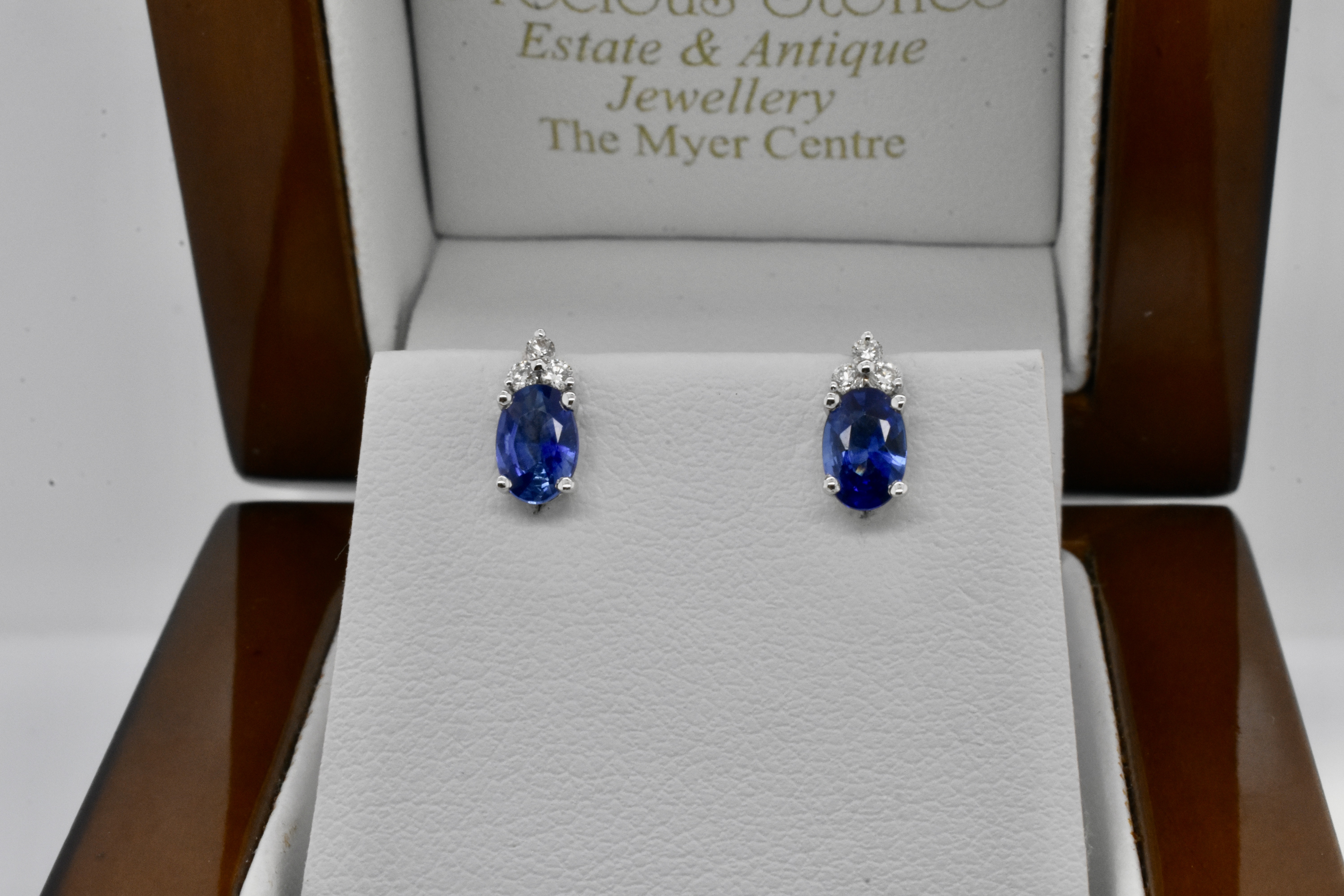 SOLD 18ct White Gold 0.94ct Ceylon Sapphire & Diamond Studs