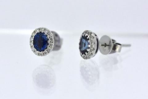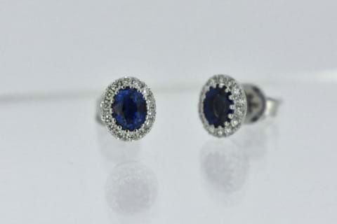 18ct white gold halo studs each featuring an oval blue Ceylon sapphire with a combined total of 0.82cts and each surrounded by 14 sparkling round brilliant cut diamonds totalling 0.20cts combined. Independent Valuation Supplied