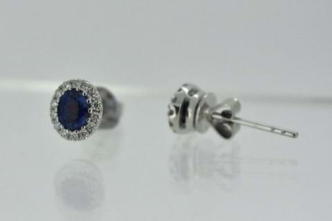 SOLD 18ct 0.82ct Ceylon Sapphire & Diamond Halo Studs