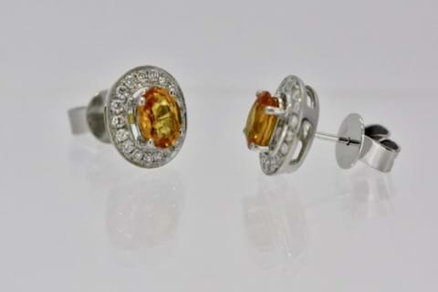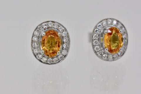 SOLD 18ct 1.87ct Orange Sapphire & 0.40ct Diamond Studs