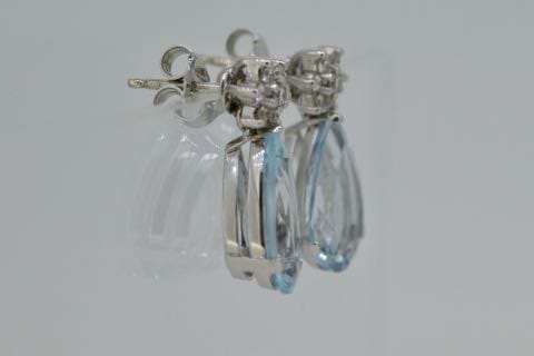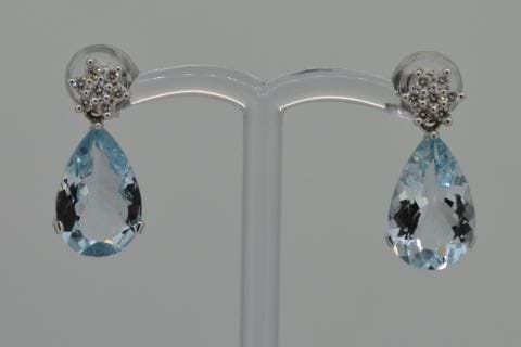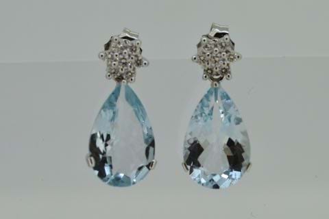 These stunning Aquamarine & Diamond earrings are hand crafted by the finest Italian jewellers. The total weight of the bright, white diamonds is 0.30ct. The magnificent blue, pear shape Aquamarines have an impressive total weight of 6.90ct, Independent Valuation Supplied.