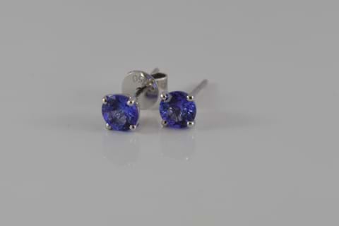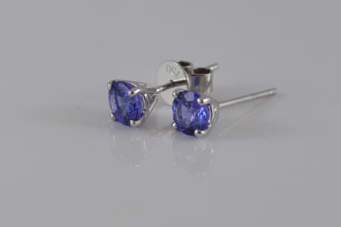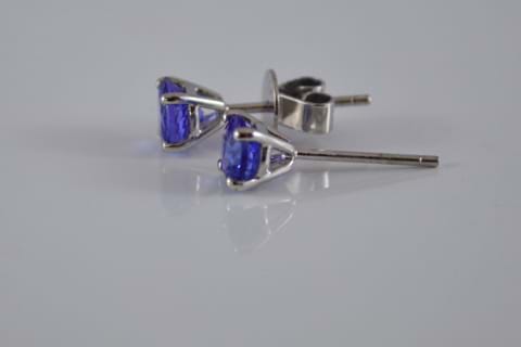 Two beautiful round brilliant cut Tanzanites equalling 1.14ct, simply set in an 18ct White Gold 4 claw setting. They are perfect to wear alone or why not put a diamond jacket around them to sparkle them up? See diamond jackets under earrings on our website for more information.