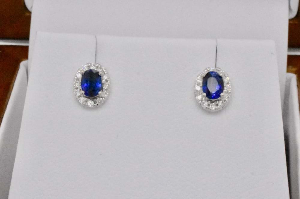 SOLD 18ct White Gold 0.47ct Ceylon Sapphire & 0.12ct Diamond Studs