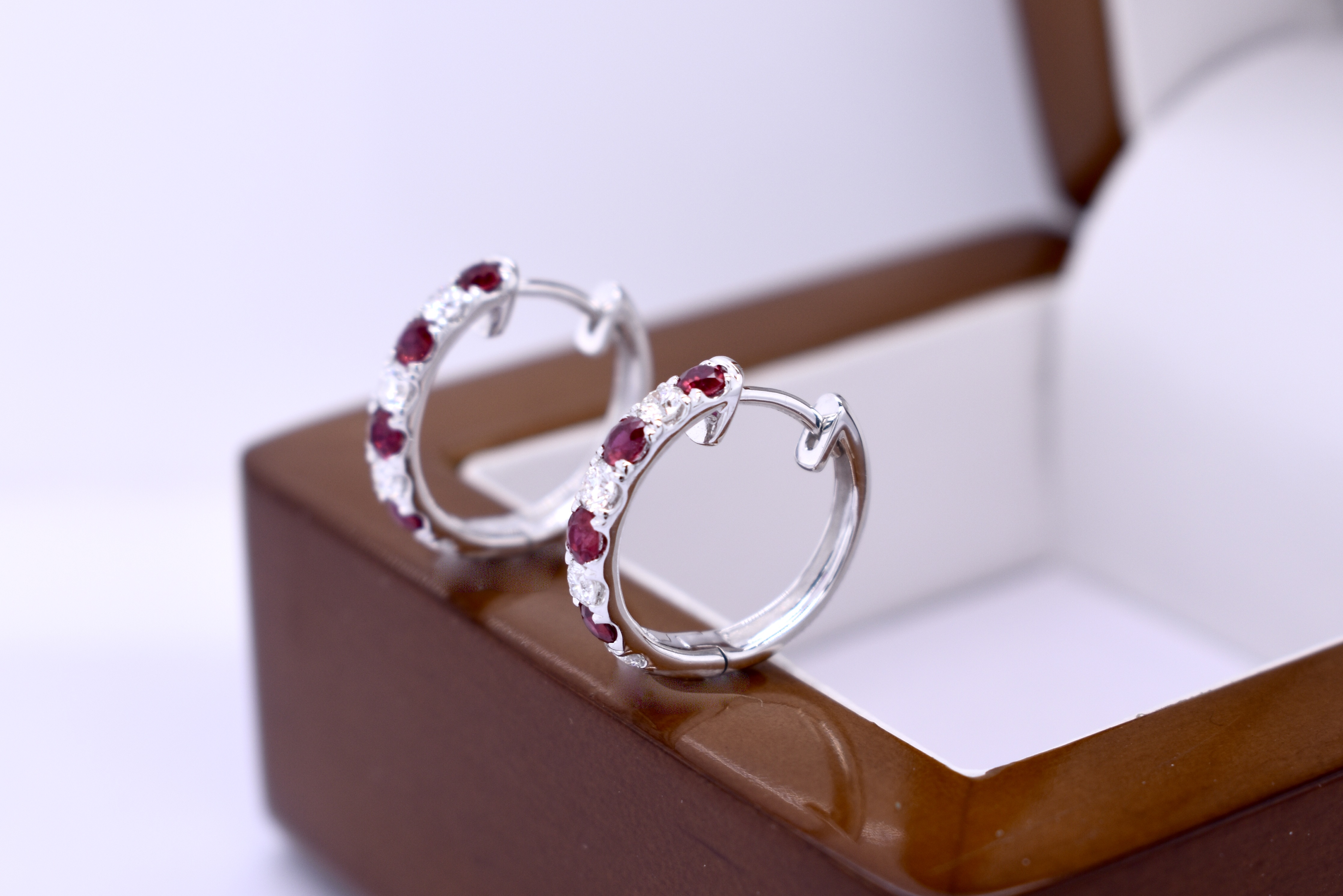 SOLD 18ct White Gold 0.51ct Ruby & 0.36ct Diamond Alternating Hoops