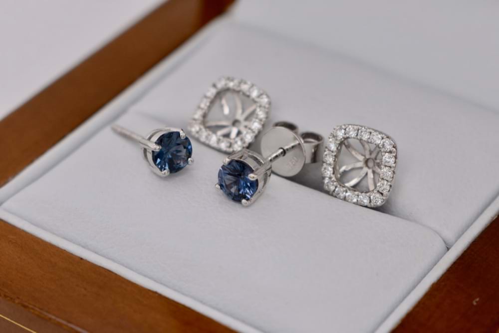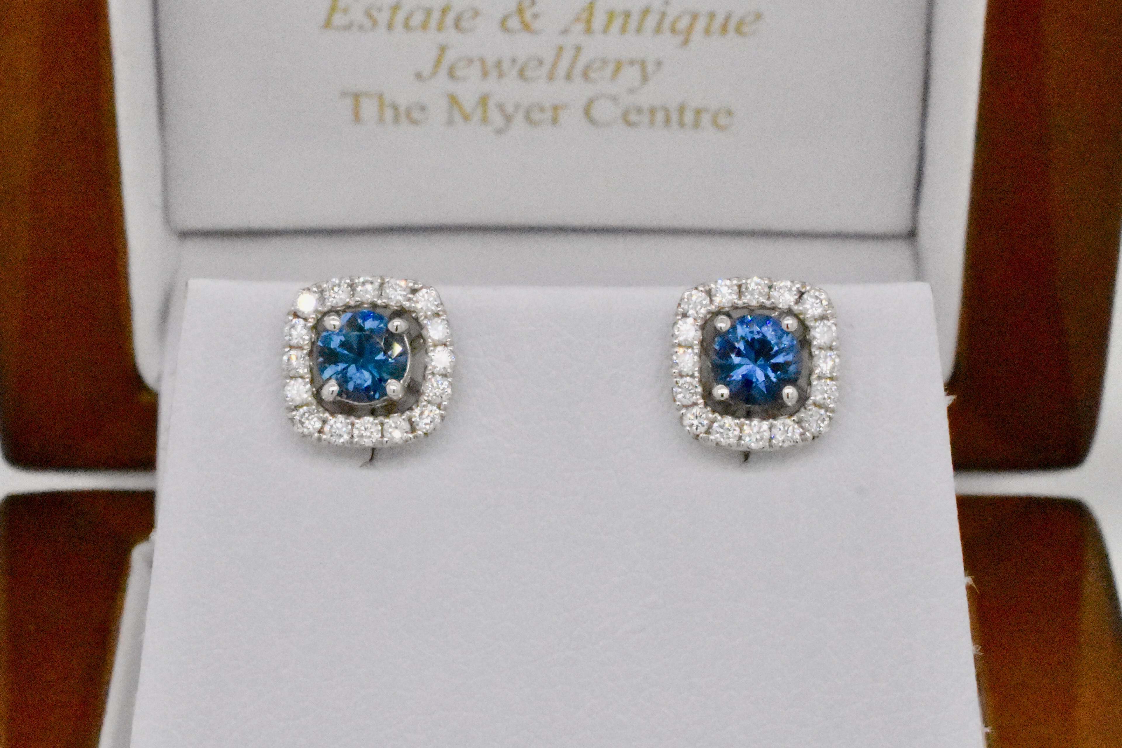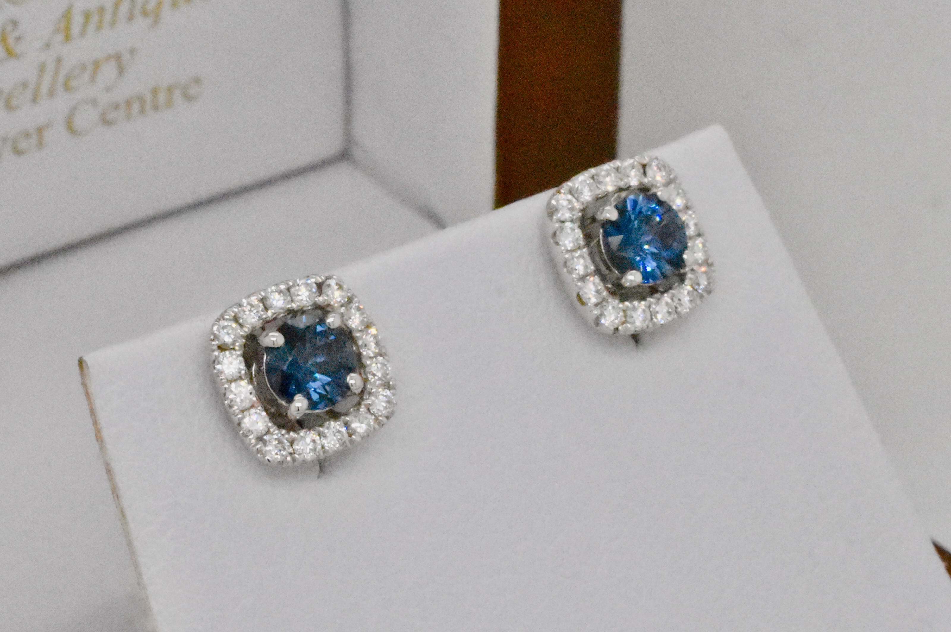 A pair of beautiful blue spinels totalling 0.64cts set into 18ct white gold four claw stud fittings. Independent Valuation Supplied