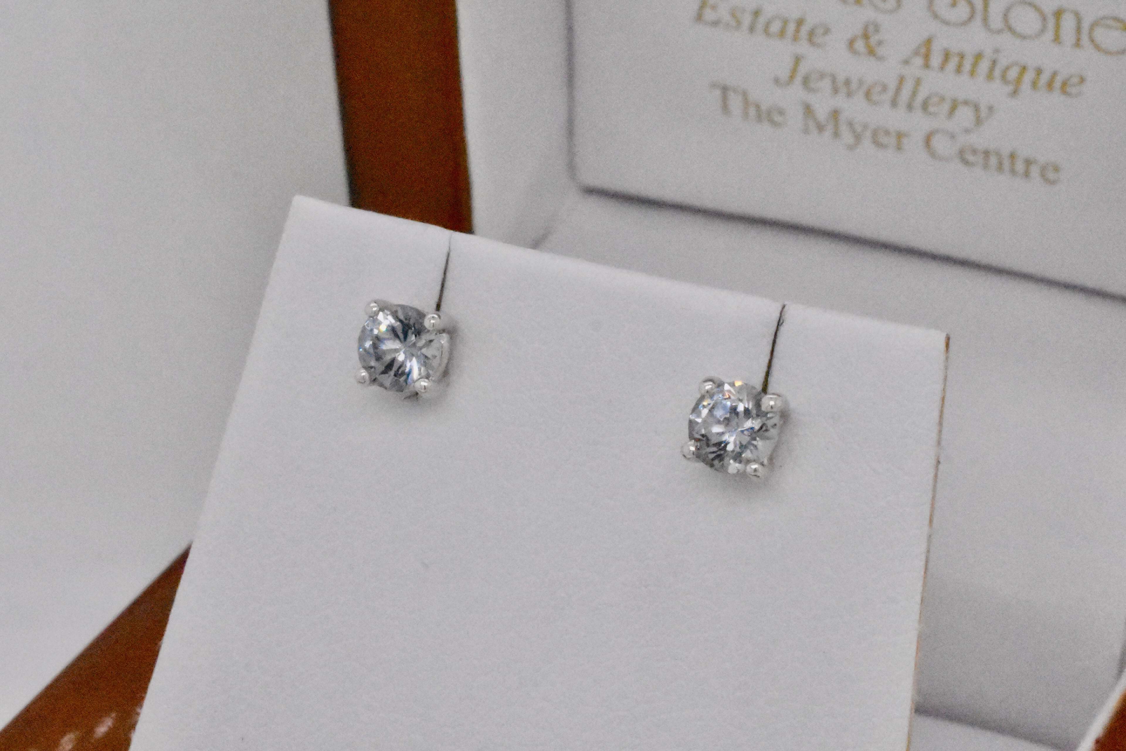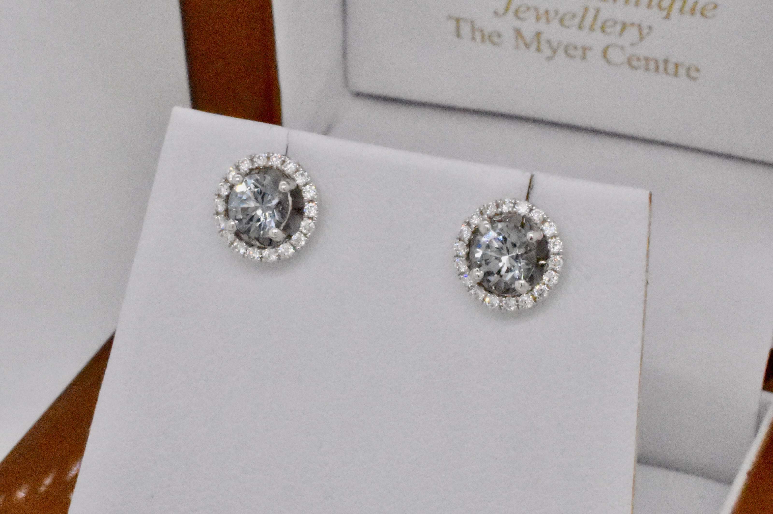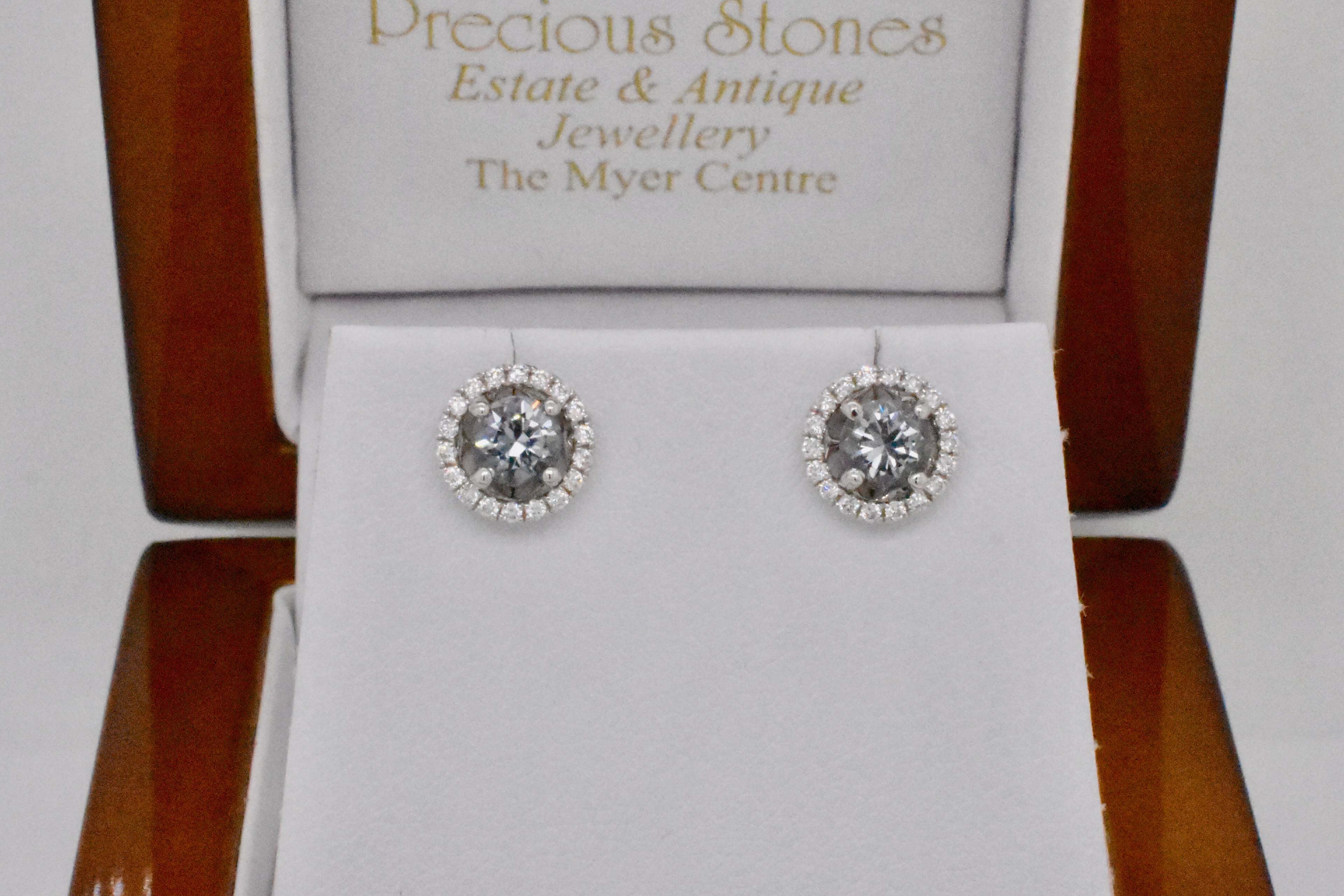 Stunning and unusual. A pair of bright, mid-light grey, spinels from Burma weighing 0.78cts and set into 18ct white gold four claw stud fittings. Independent Valuation Supplied