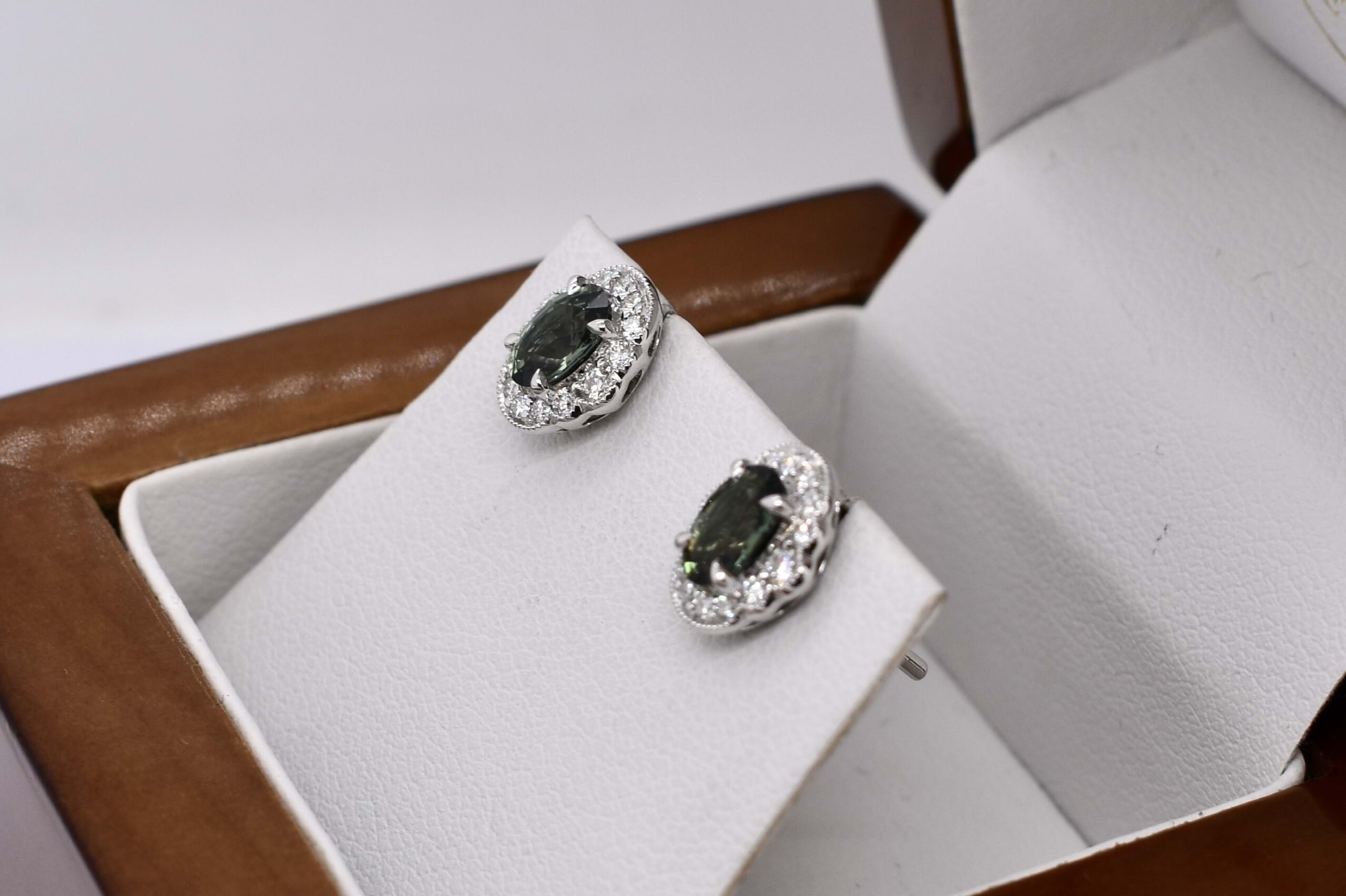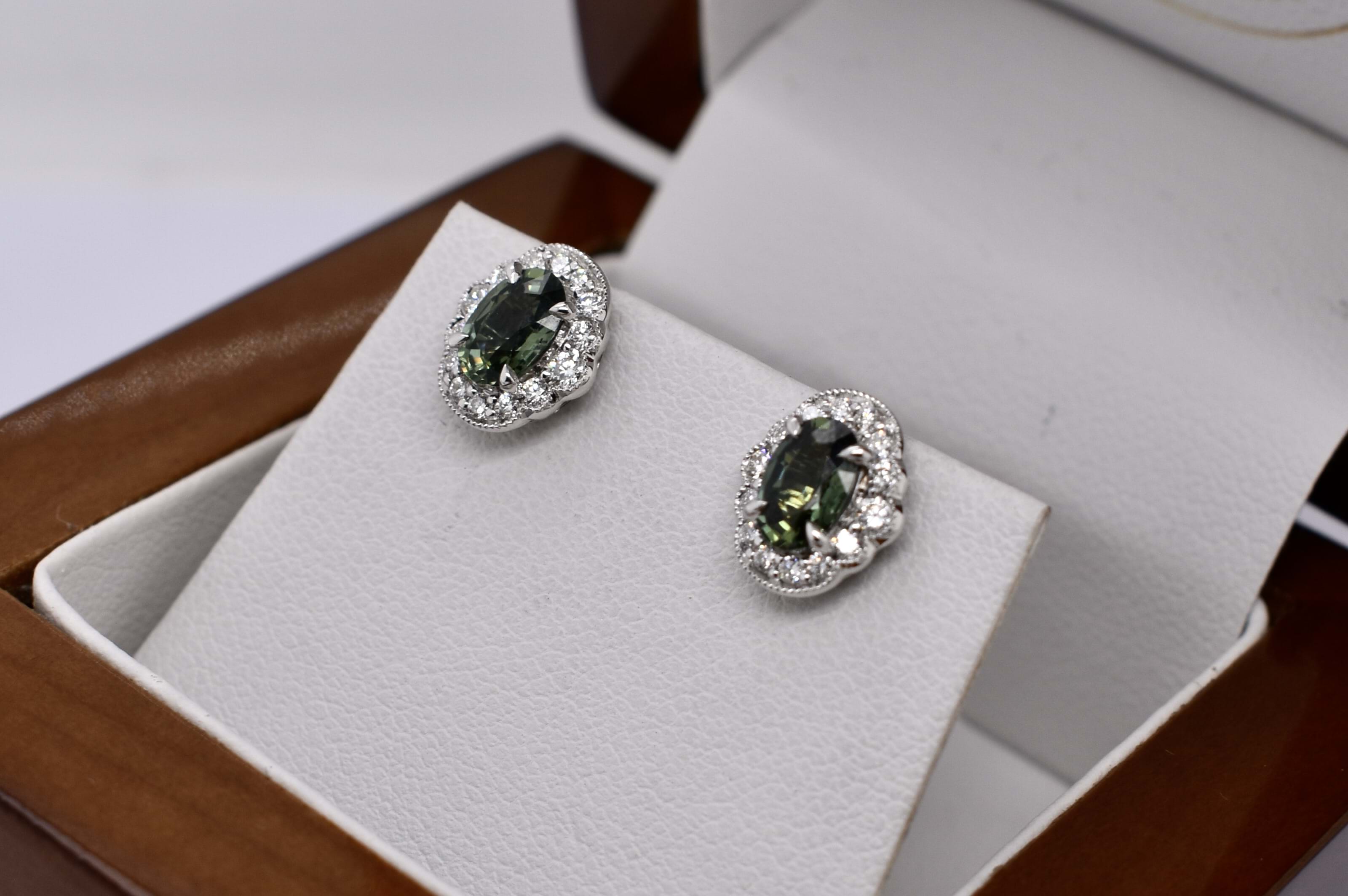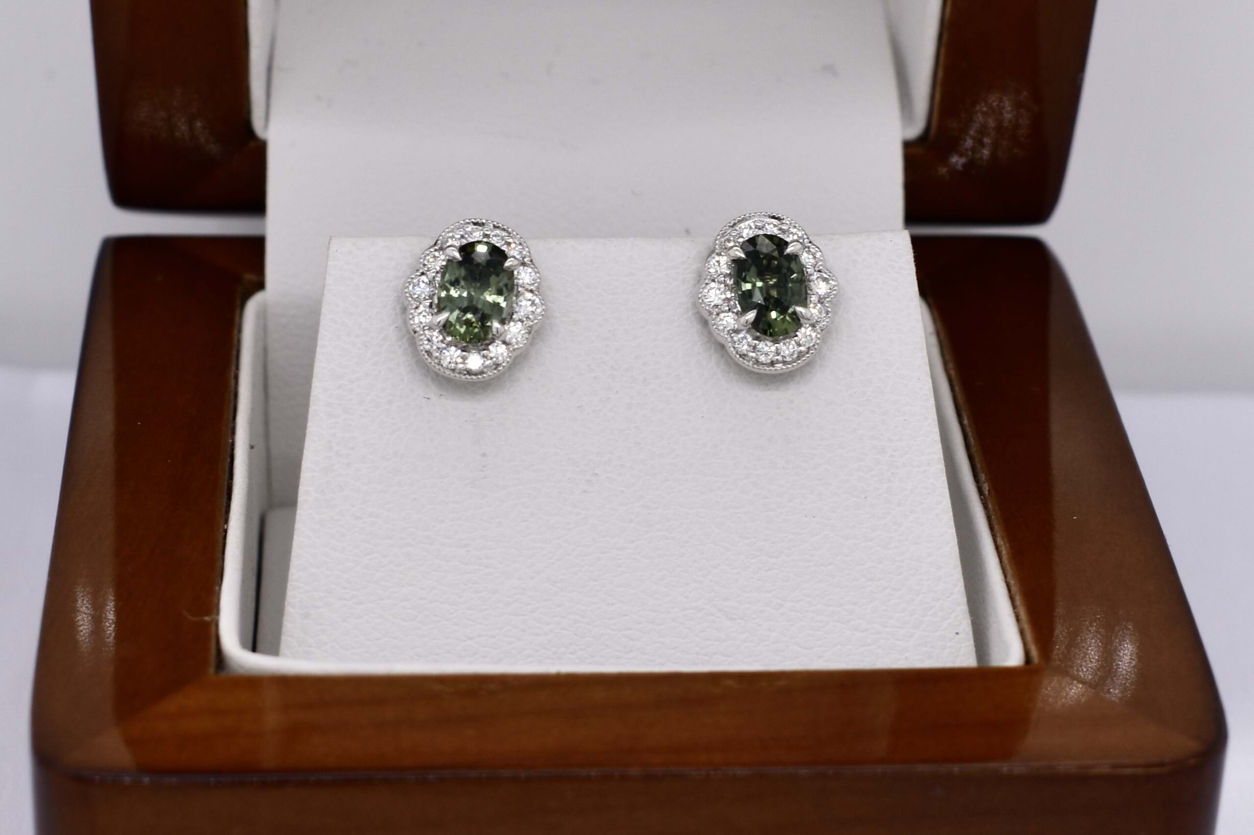 SOLD 18ct White Gold 1.04ct Green Aus Sapphire & 0.25ct Diamond Studs