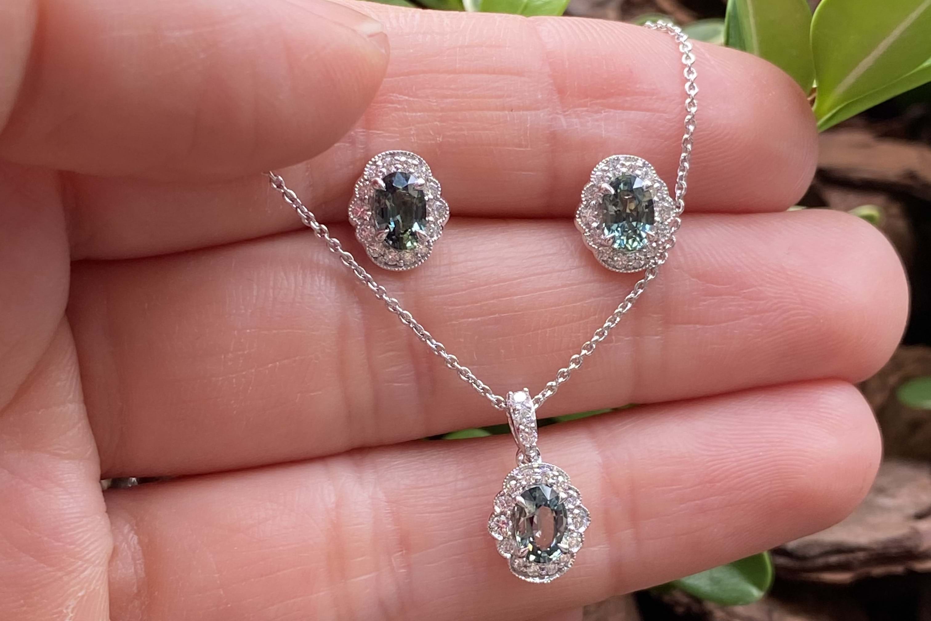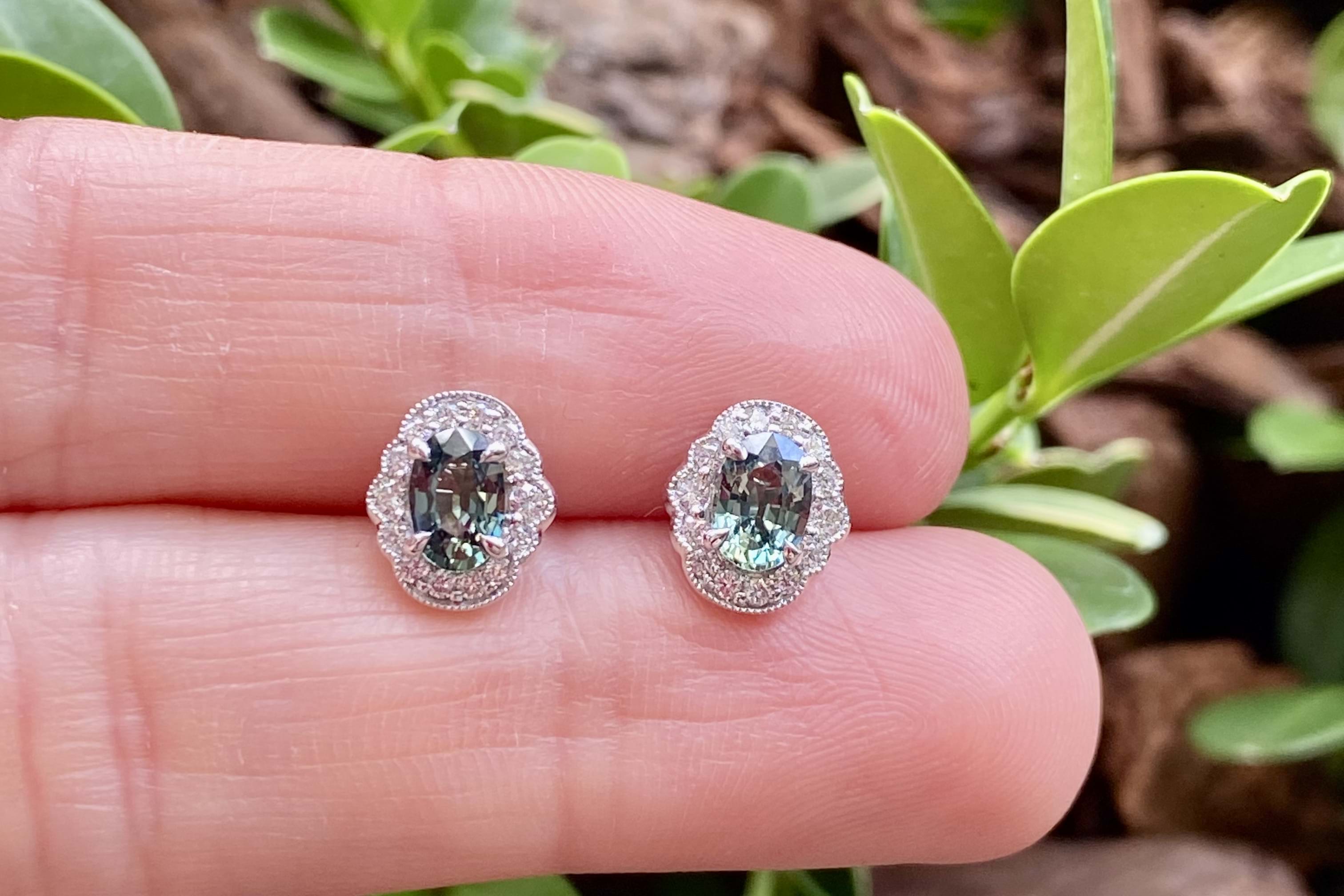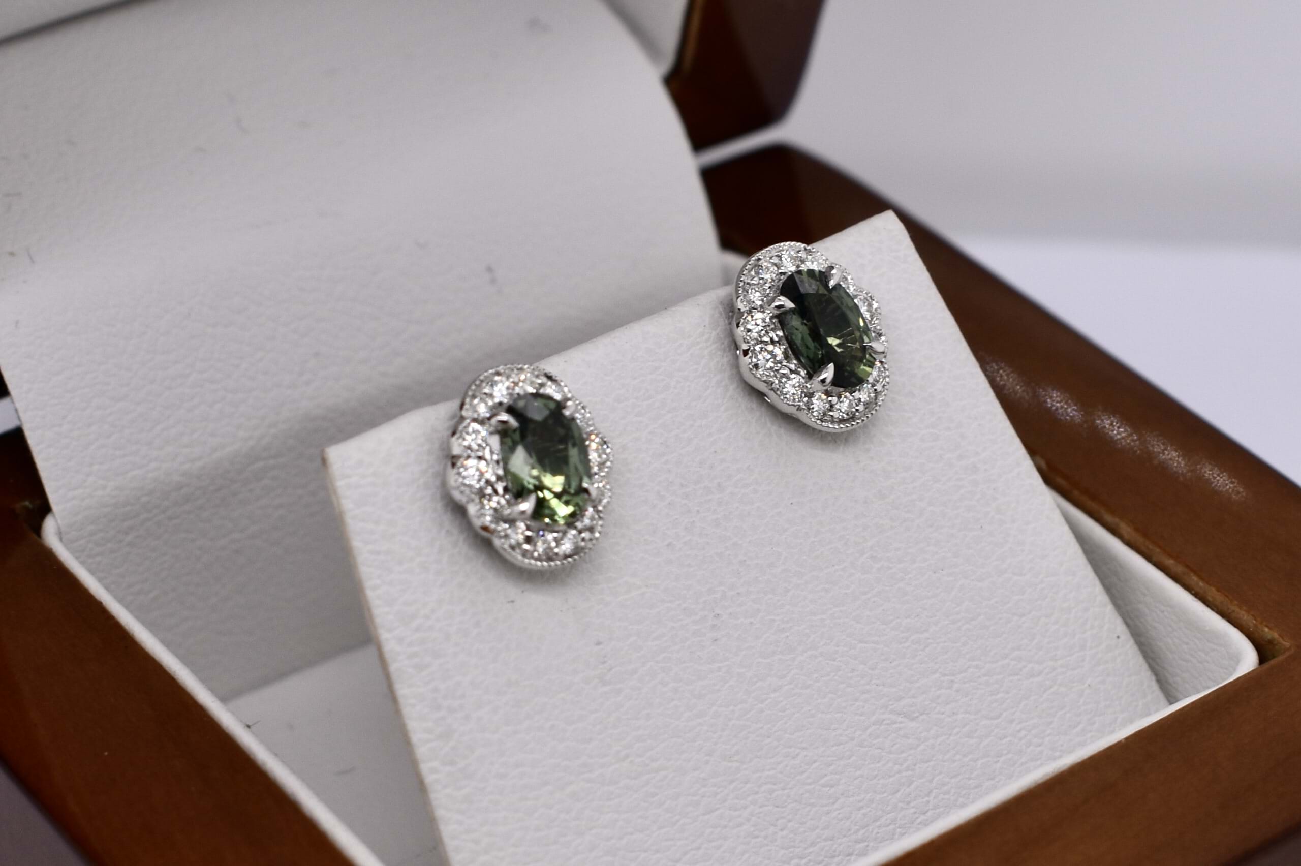 SOLD 18ct White Gold 1.04ct Green Aus Sapphire & 0.25ct Diamond Studs