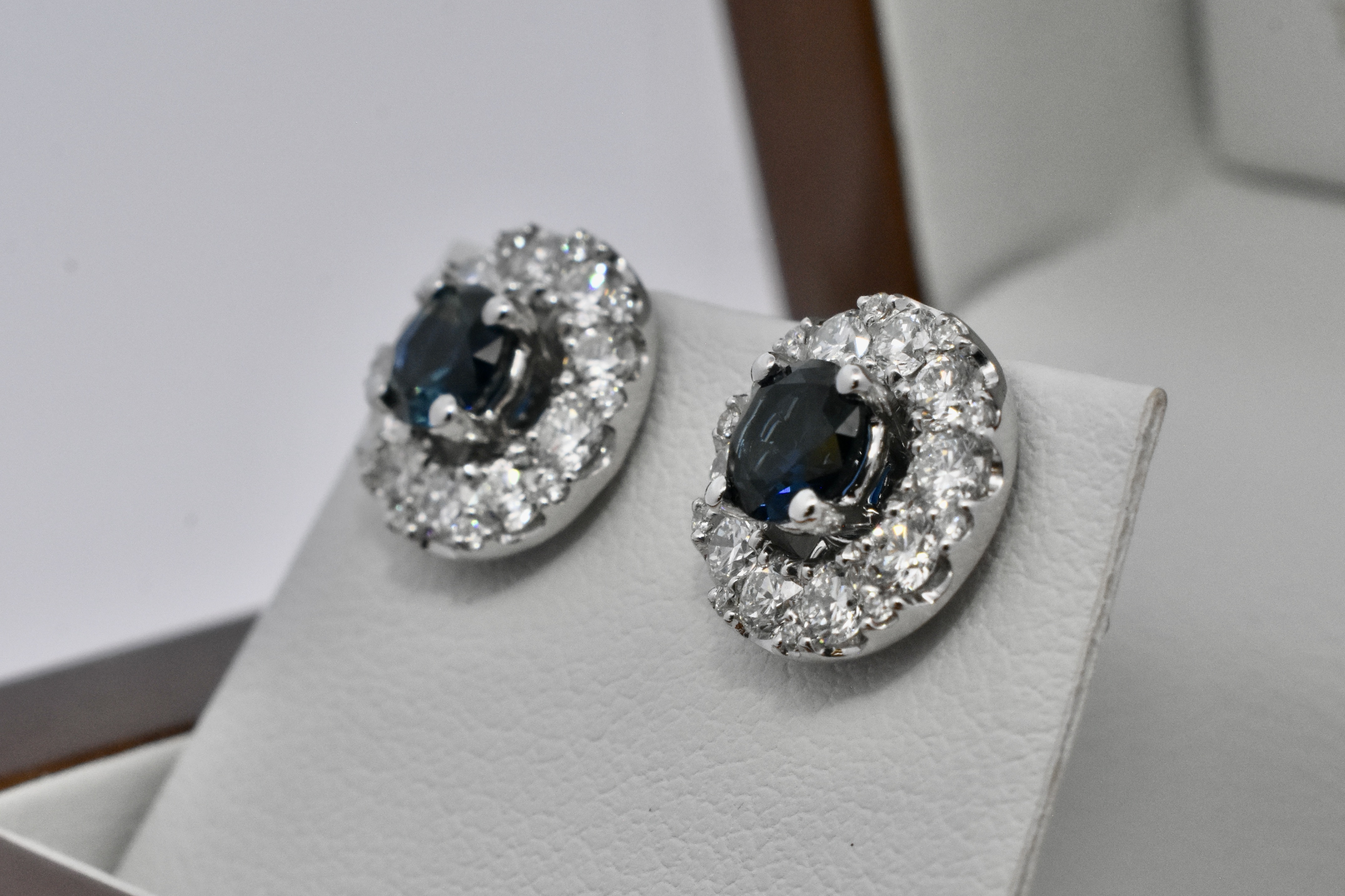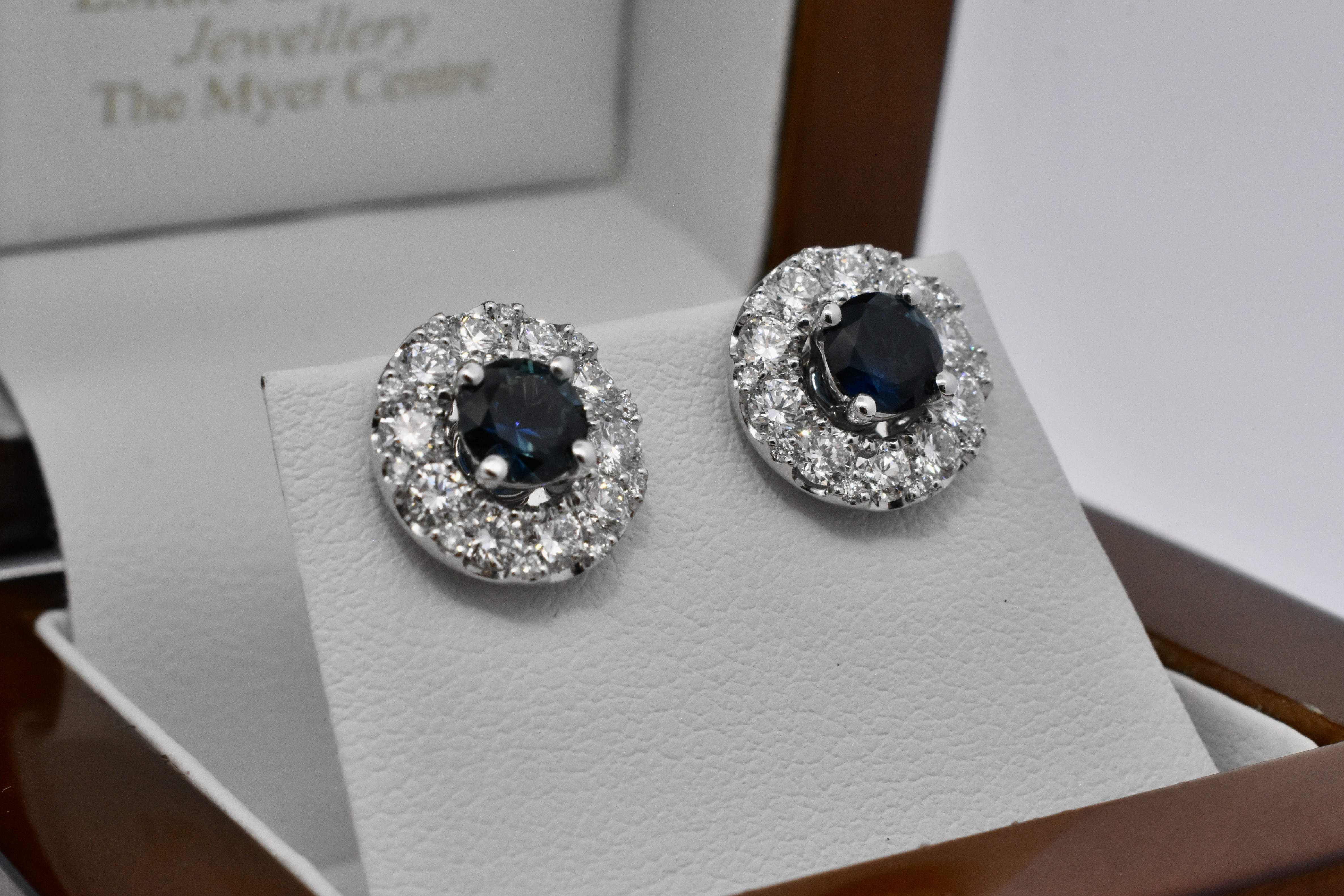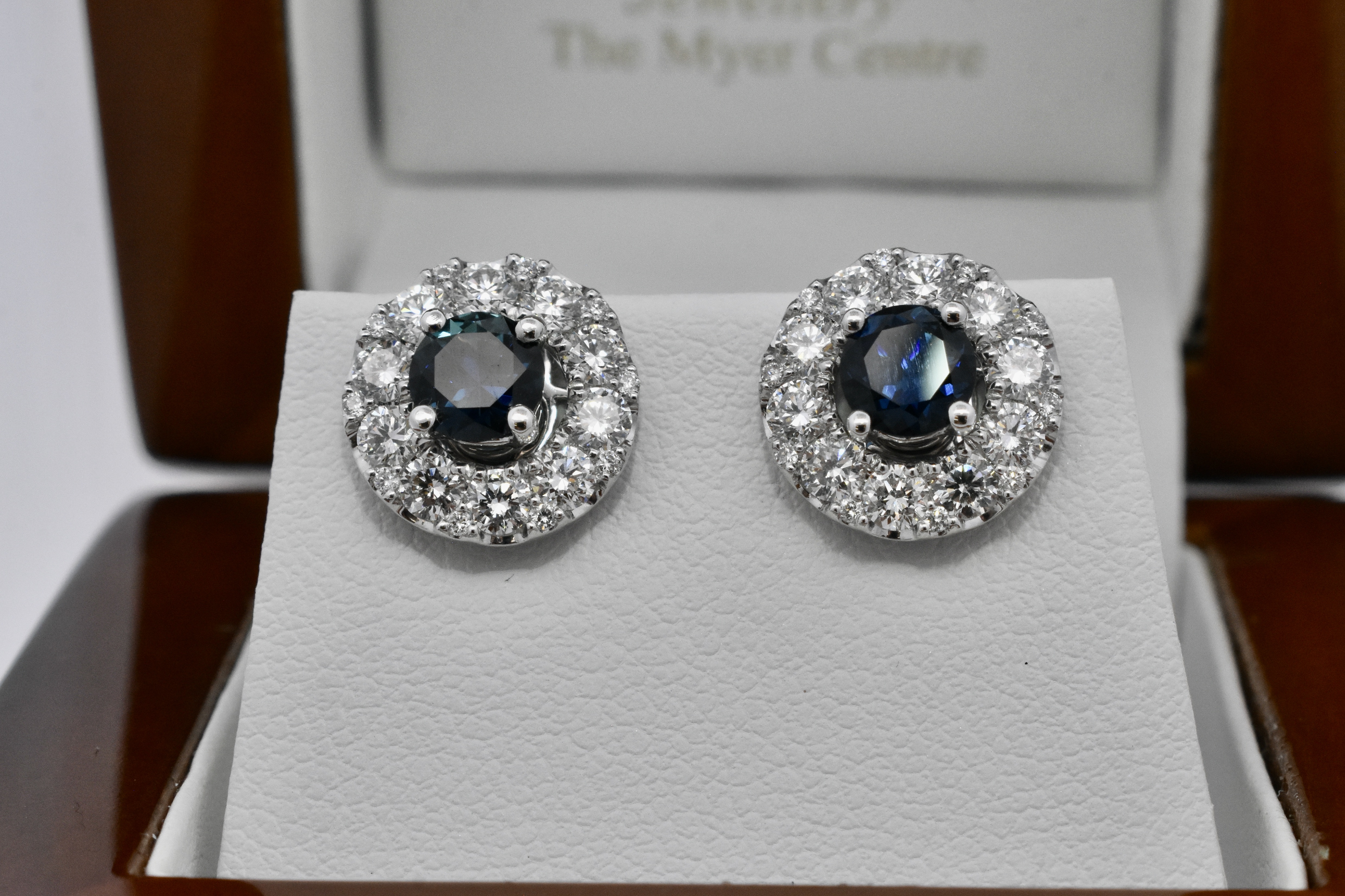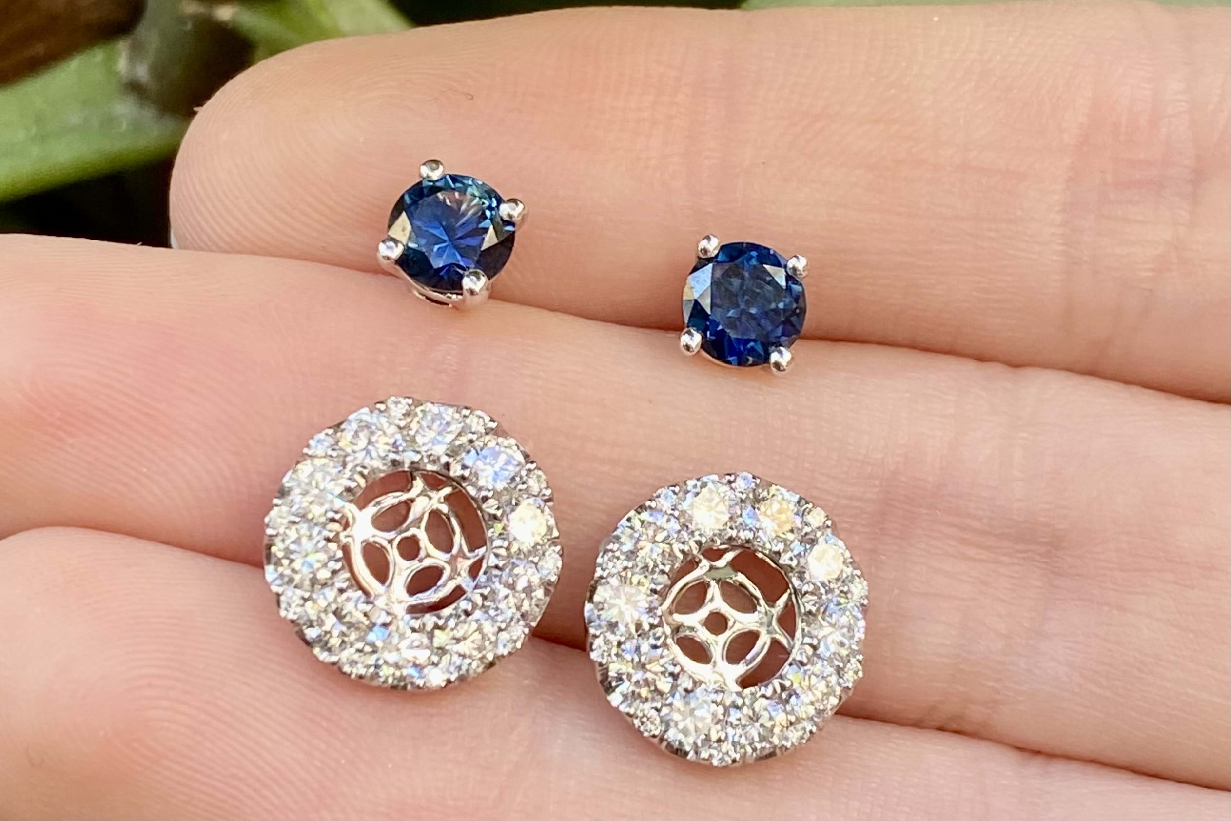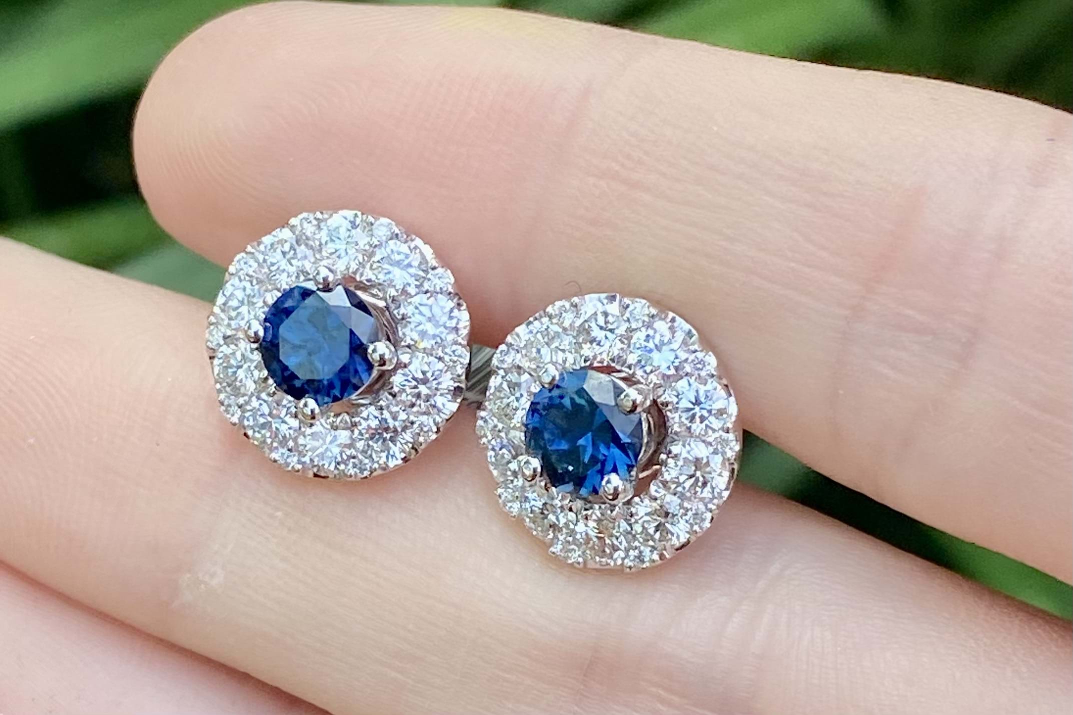 These simple and classic Australian sapphire studs are the perfect staple to any collection. Set in 18ct white gold, these two round bright dark blue sapphires are four claw set, totalling 1.24ct. These studs look fantastic alone or paired with jackets as pictured (available for separate purchase 20350543).