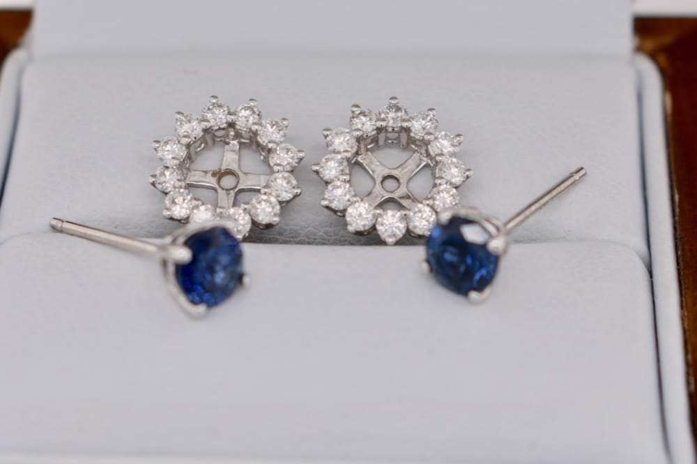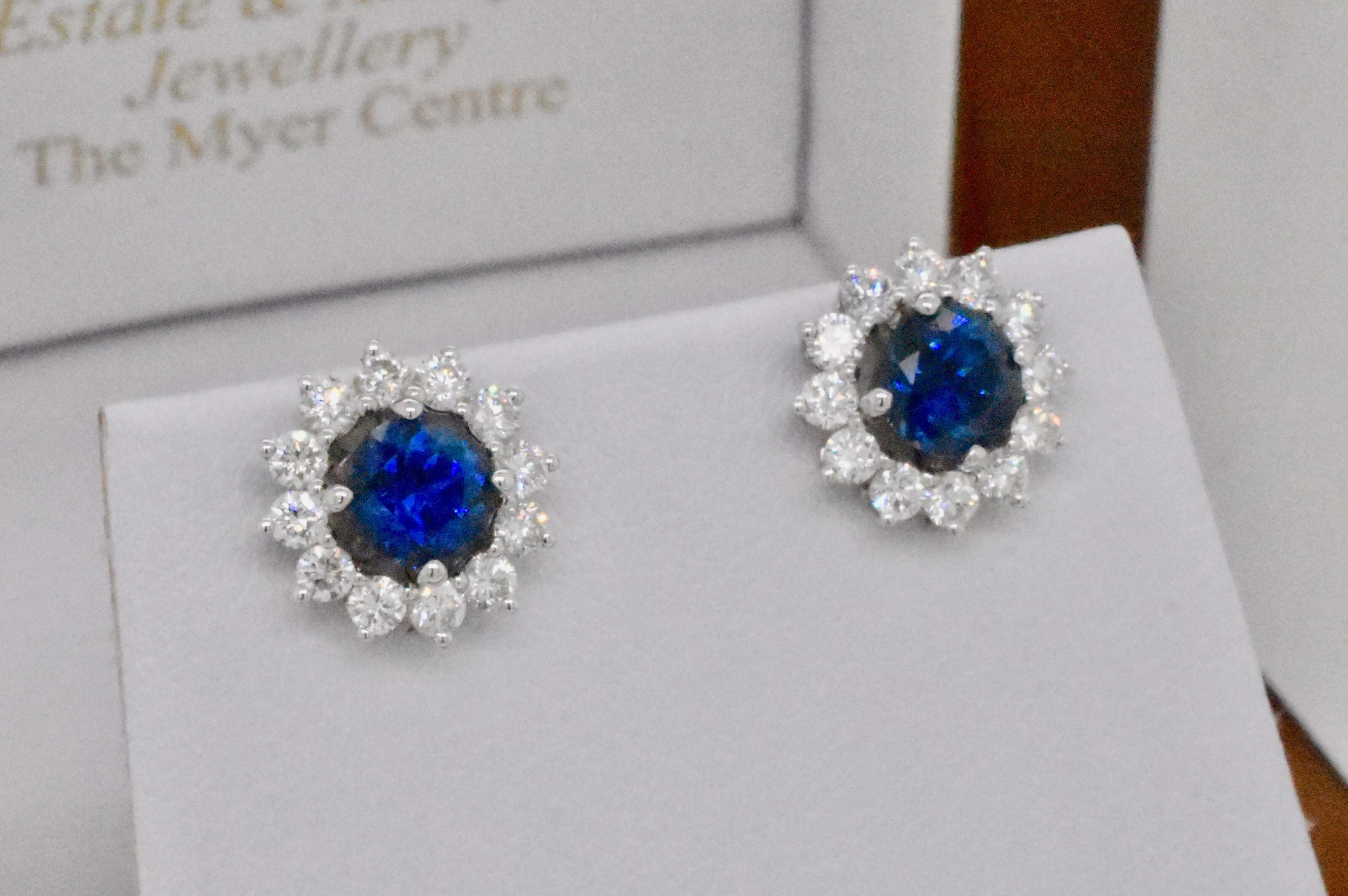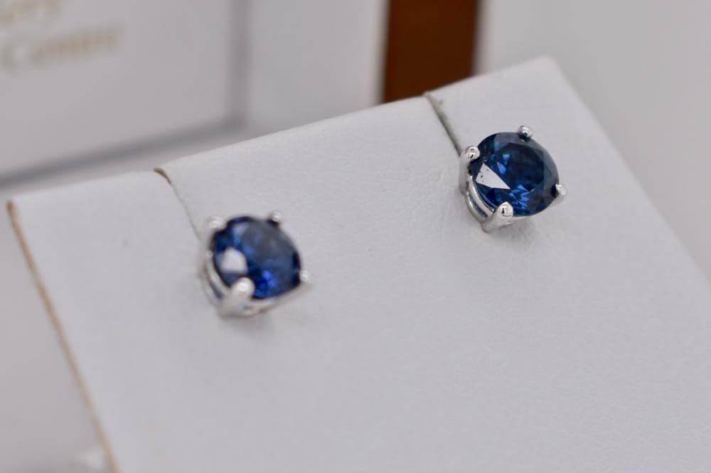 A pair of stunning, bright, dark blue Australian sapphires totalling 1.25cts set into 18ct white gold four claw stud fittings. Independent Valuation Supplied