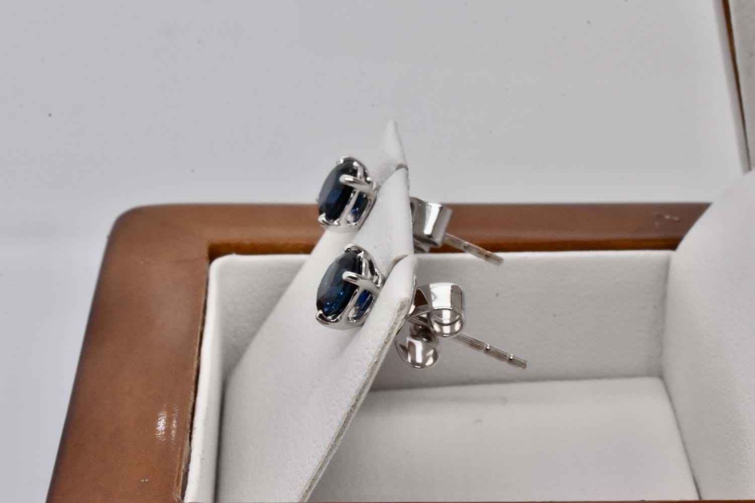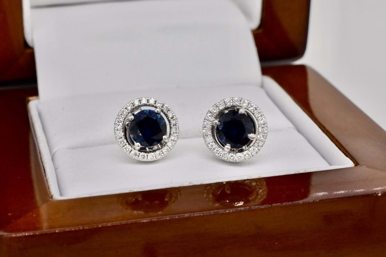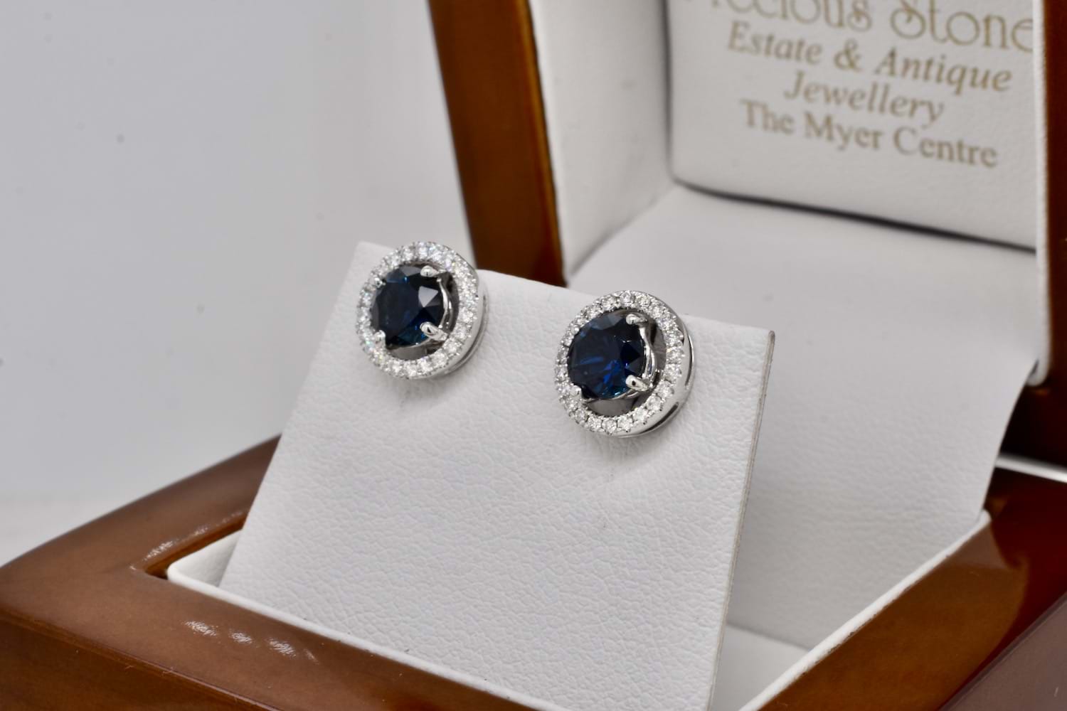 A simple pair of studs featuring a stunning duo of round, fine blue Australian Inverell (NSW) sapphires totalling 1.42ct in 4 claw settings with post and butterfly fittings. Gorgeous on their own or can be elevated to an evening wear look with diamond jackets.