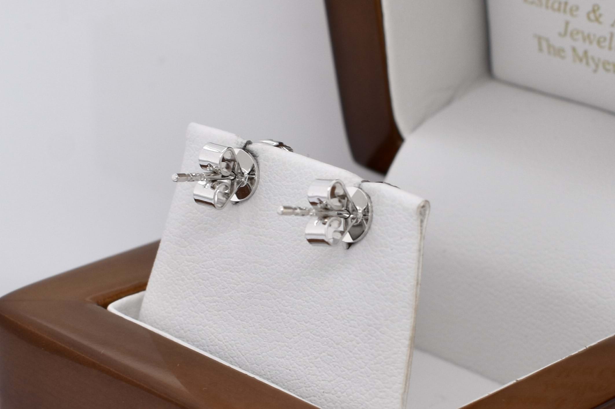 Crafted in 18ct white gold, these gorgeous oval shaped bright mid-light green tsavorite garnet studs, measure 5.30 x 4.65mm and total 1.51ct. The tsavorites are 4 claw set with a gapped outer surround which features a total of twenty 1.1mm round brilliant cut diamonds down the sides equalling 0.13ct G SI. Completed with classic post and butterfly fittings, these studs add a perfect pop of colour to any look. Independent Valuation Supplied.