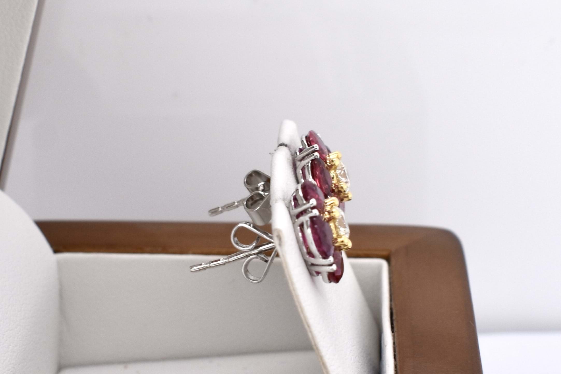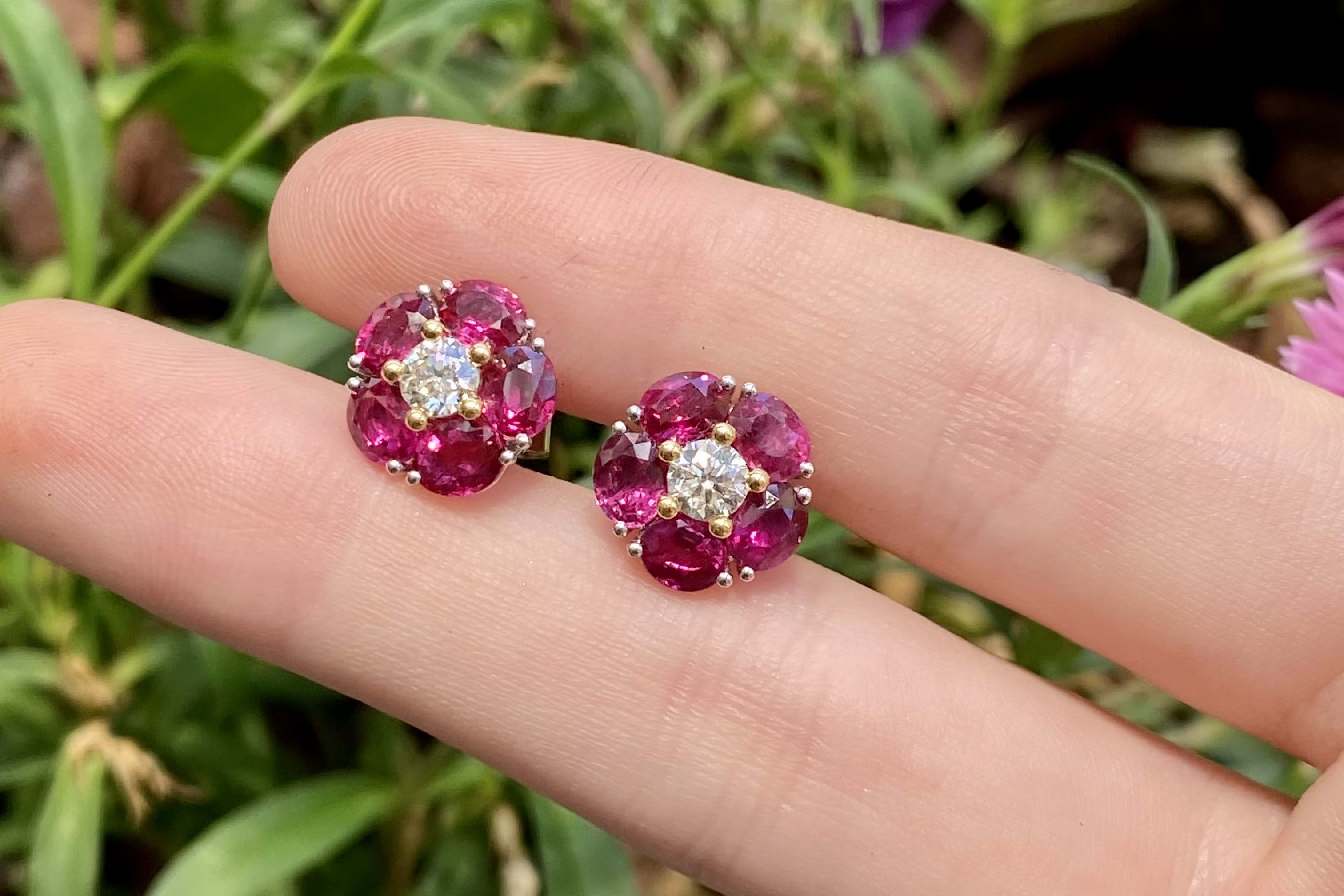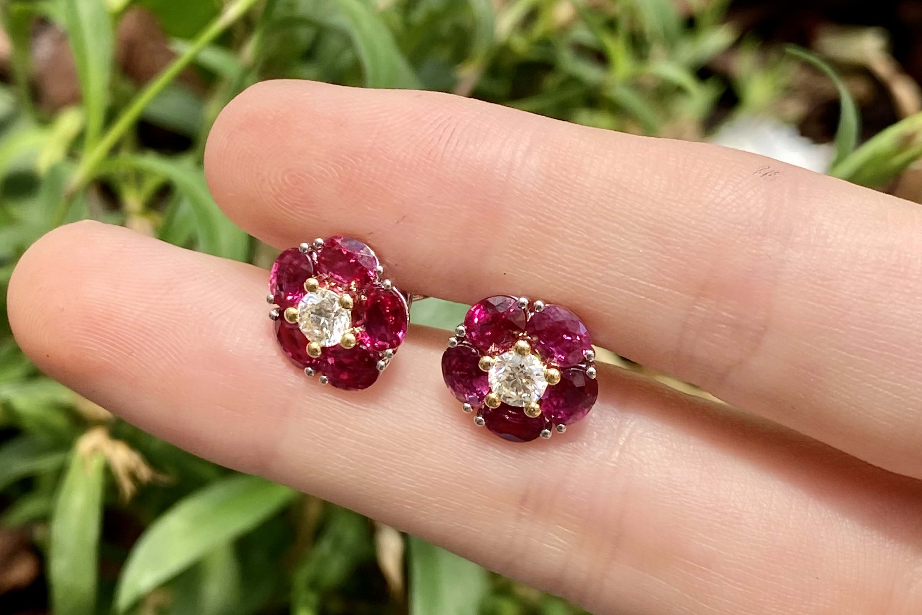 SOLD 18ct White & Yellow Gold 3.82ct Ruby & 0.54ct J VS Diamond Flower Cluster Studs