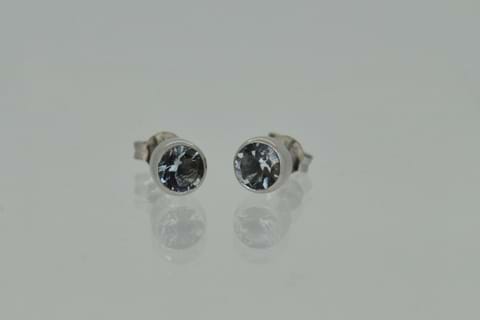 Bezel set in 9ct white gold these round blue aquamarines make perfect earrings for daily wear.