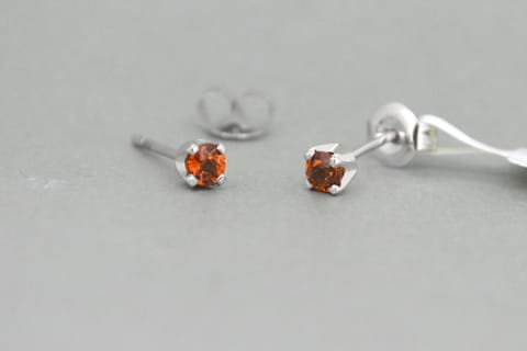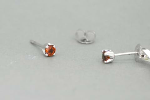 Vivid and bright! A pair of 9ct white gold stud earrings each containing an eye catching round mandarin garnet. Set into four claws the two garnets have a combined total weight of 0.45cts.
